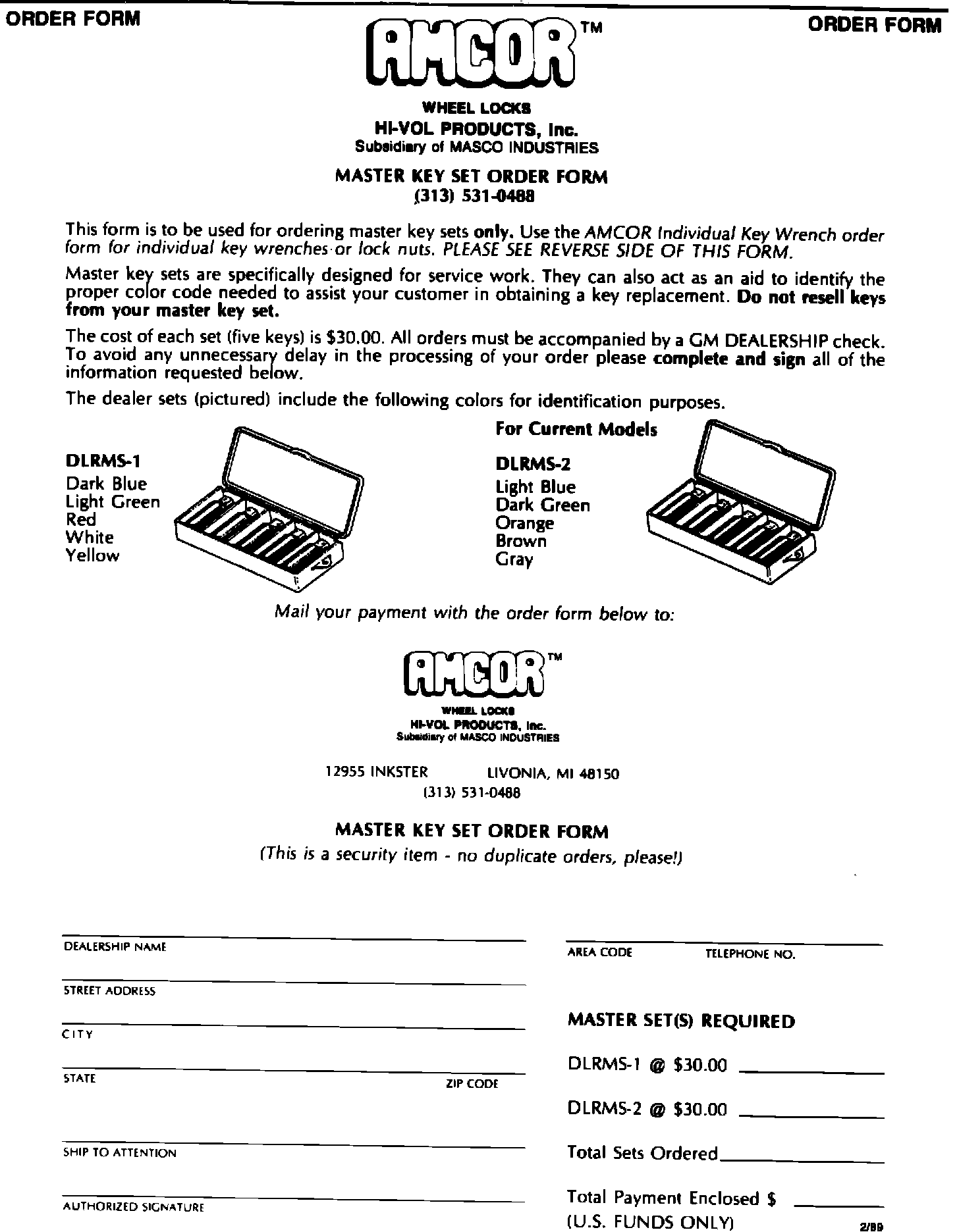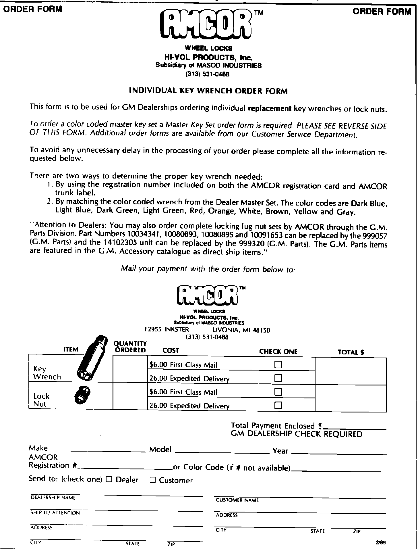 two (2) suppliers of locking wheel nut systems used in 1989 G.M. vehicles, Amcor and McGuard.