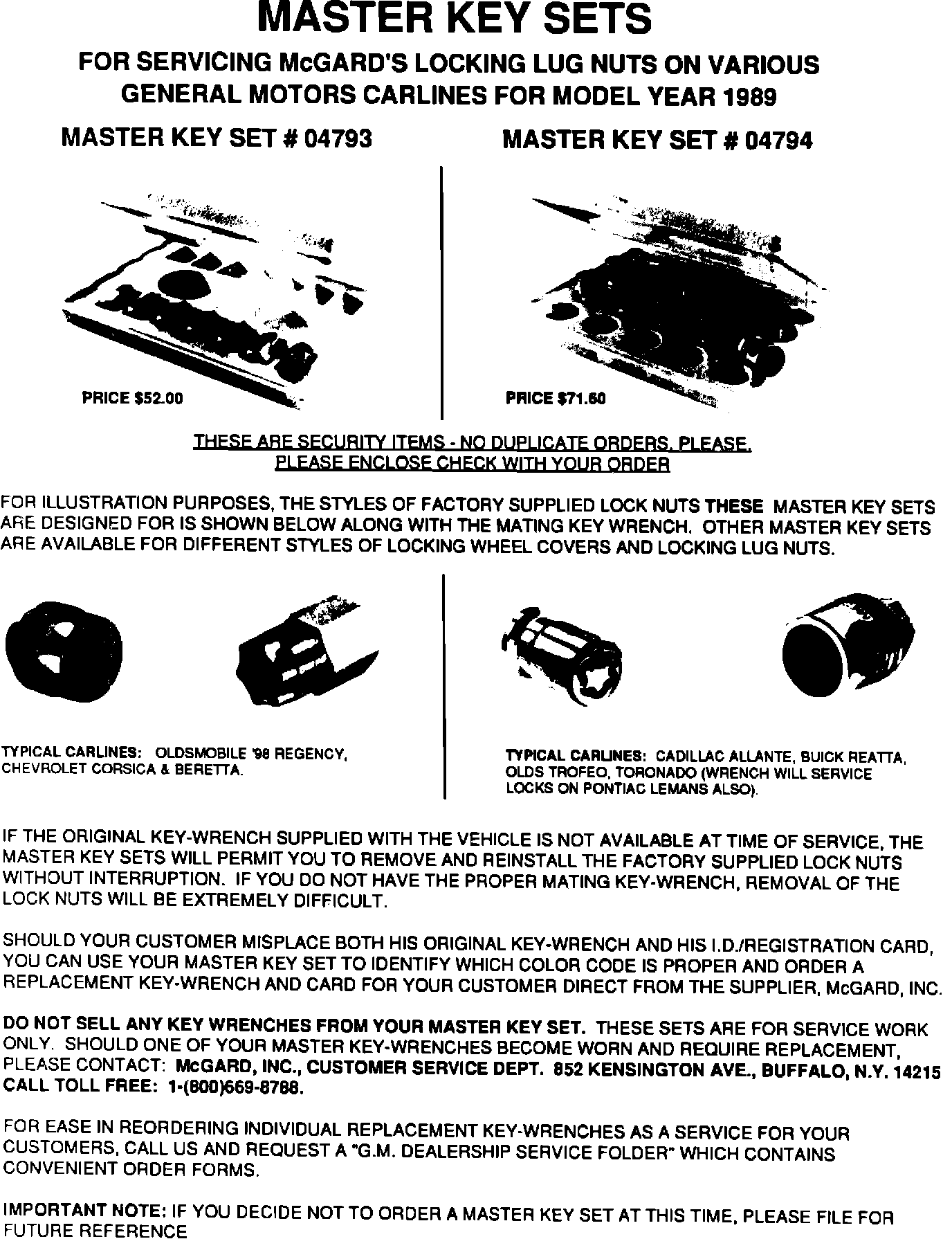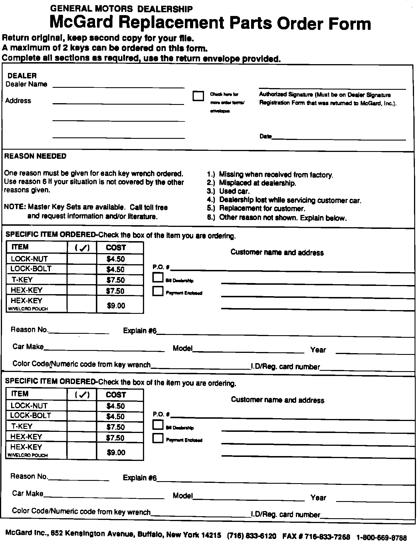 McGuard when an order is received, or can be obtained by telephone request (see order forms for telephone numbers).