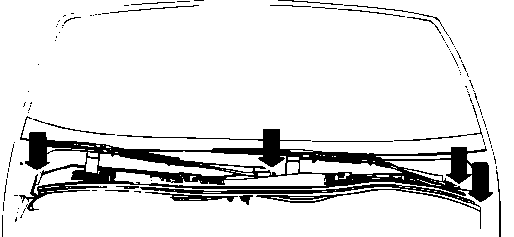 5. Check the heater/evaporator case for debris. Remove any debris present through the power module/resistor block opening. If the debris is imbedded into the evaporator core face and cannot be removed, the core will have to be removed from the vehicle and cleaned off the car. If a large amount of debris is present in the heater/evaporator case, the air inlet screen will require sealing around the windshield wiper post holes and fender edges as shown in Figure 1.