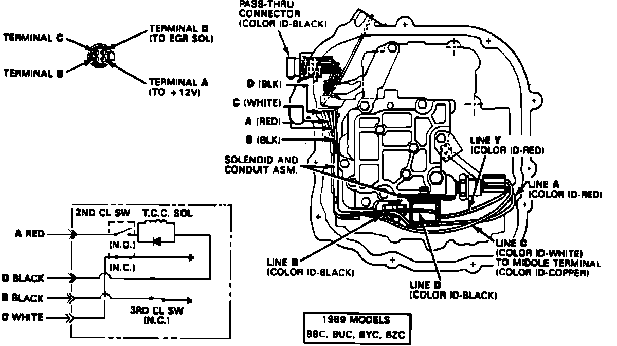 The 3rd clutch switch is incorrectly identified as normally open in Figure 39 in Section THM 125C Transaxle Diagnosis of the 1989 6000, Sunbird and Grand Am Service Manuals. The switch is identified correctly in the following illustration.