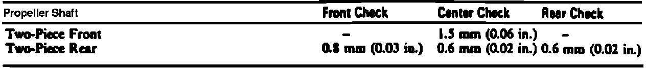 5. If runout is still over specification at one or more check points, replace propeller shaft after checking for vibration or noise. Check runout on propeller shaft replacement.