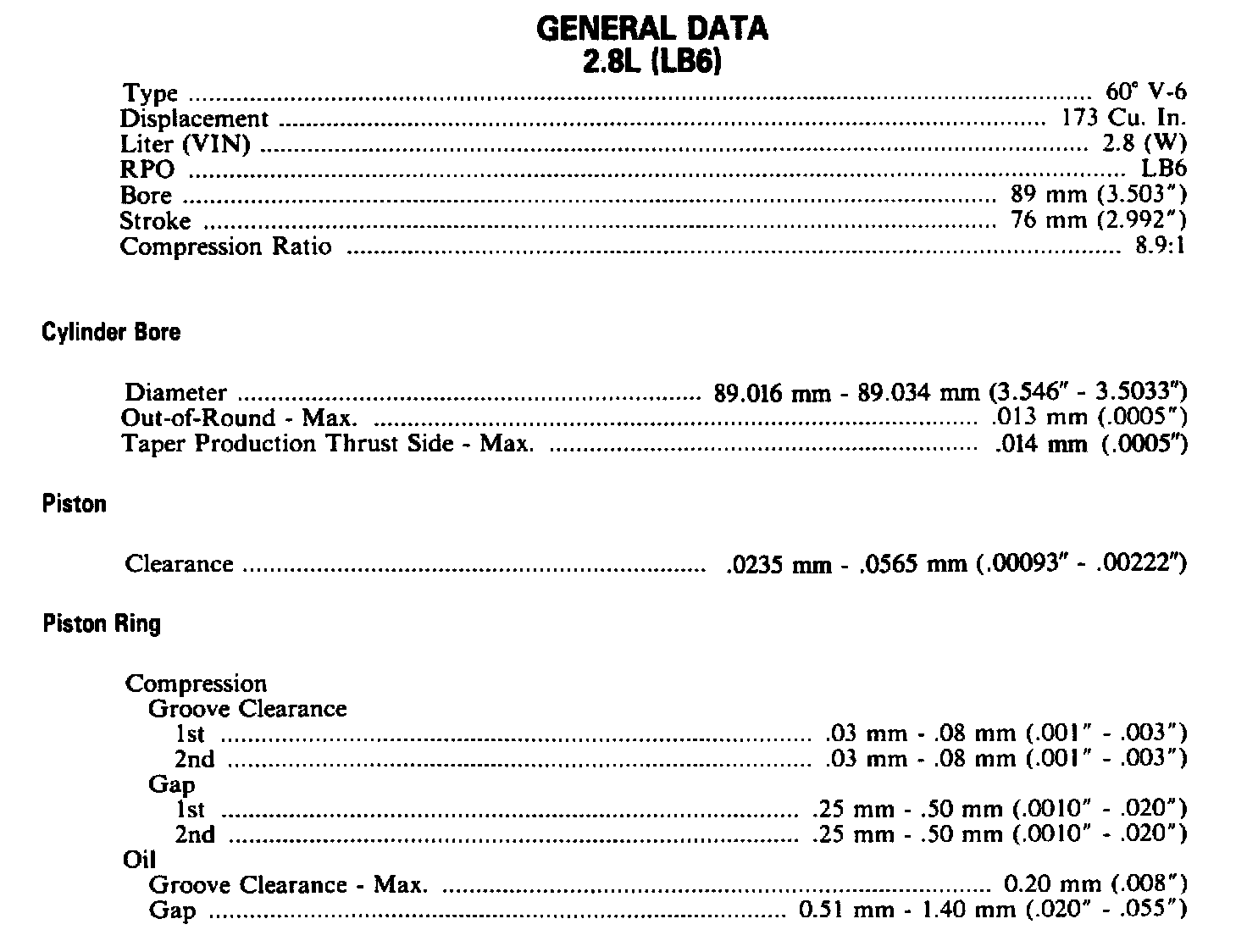 Engine Specifications (2.8L):