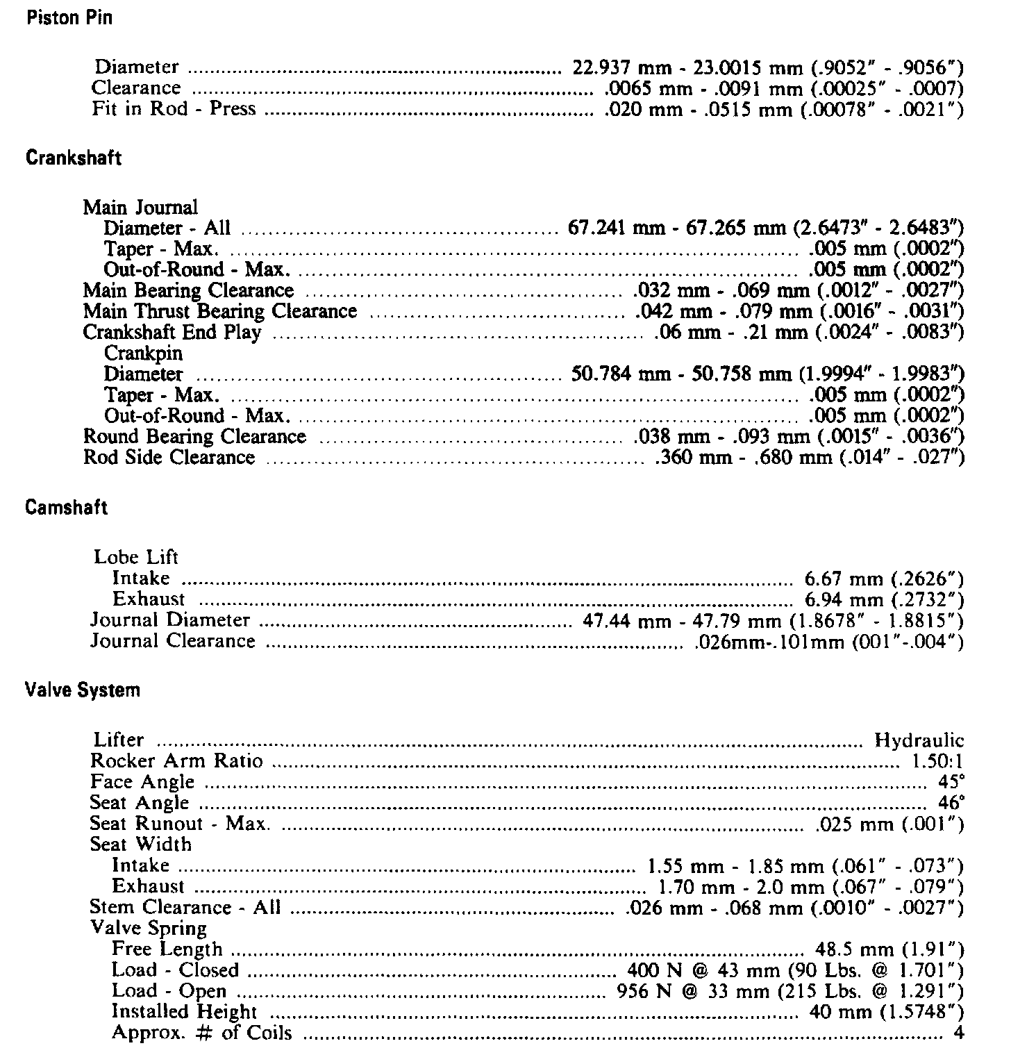 Continued Engine Specifications:
