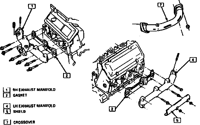 5. Remove heat shield, then crossover pipe at manifolds.