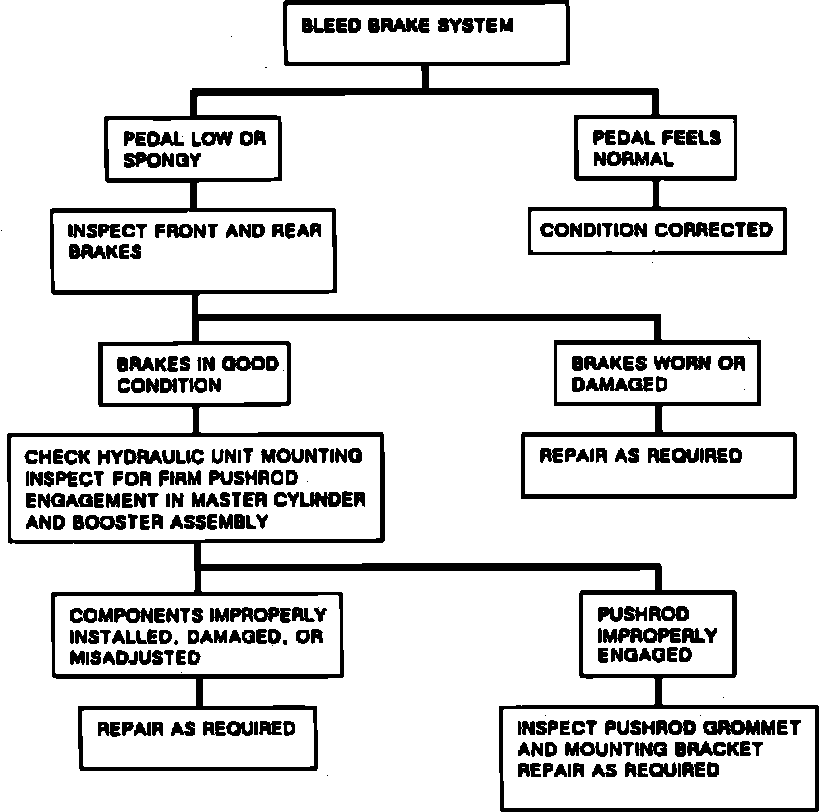 Fig. 88 Chart E-4, Low Or Spongy Brake Pedal. 1989-90 Models Except 6000: