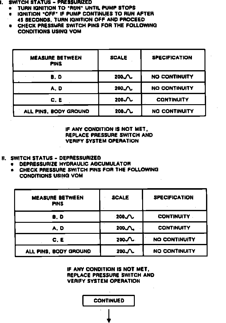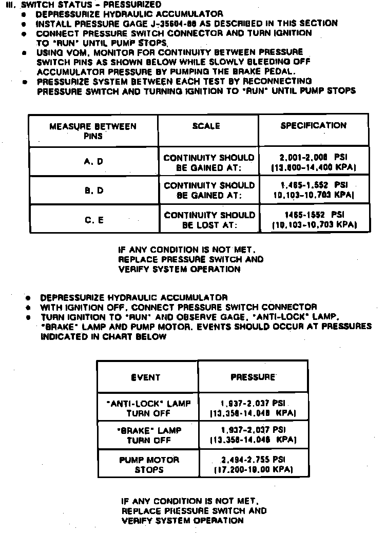 Fig. 82 Chart D-5, Pressure Switch Performance (Part 1 Of 2). 1989-90 Models Except 6000: