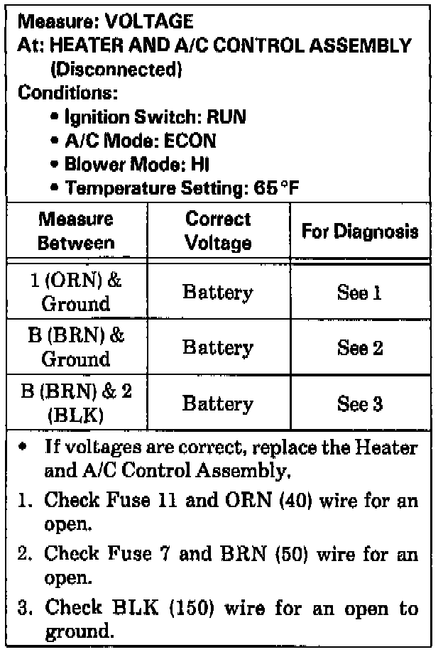 Test C: Heater and A/C Control Assembly Test