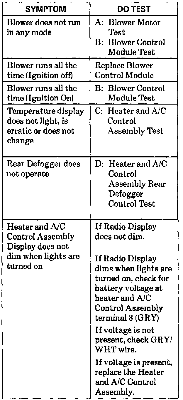 Do the tests listed for your symptom in the Symptom Table (see image).