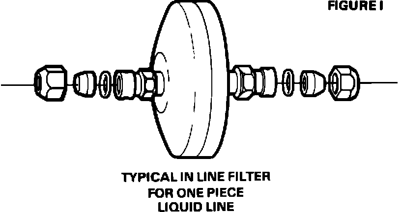 ^ In-line filter for vehicles with one piece liquid line from the condenser to evaporator (See Figure 1). This filter is a "splice-in" design so the existing liquid line can be used. This type is available with or without an orifice tube built in.