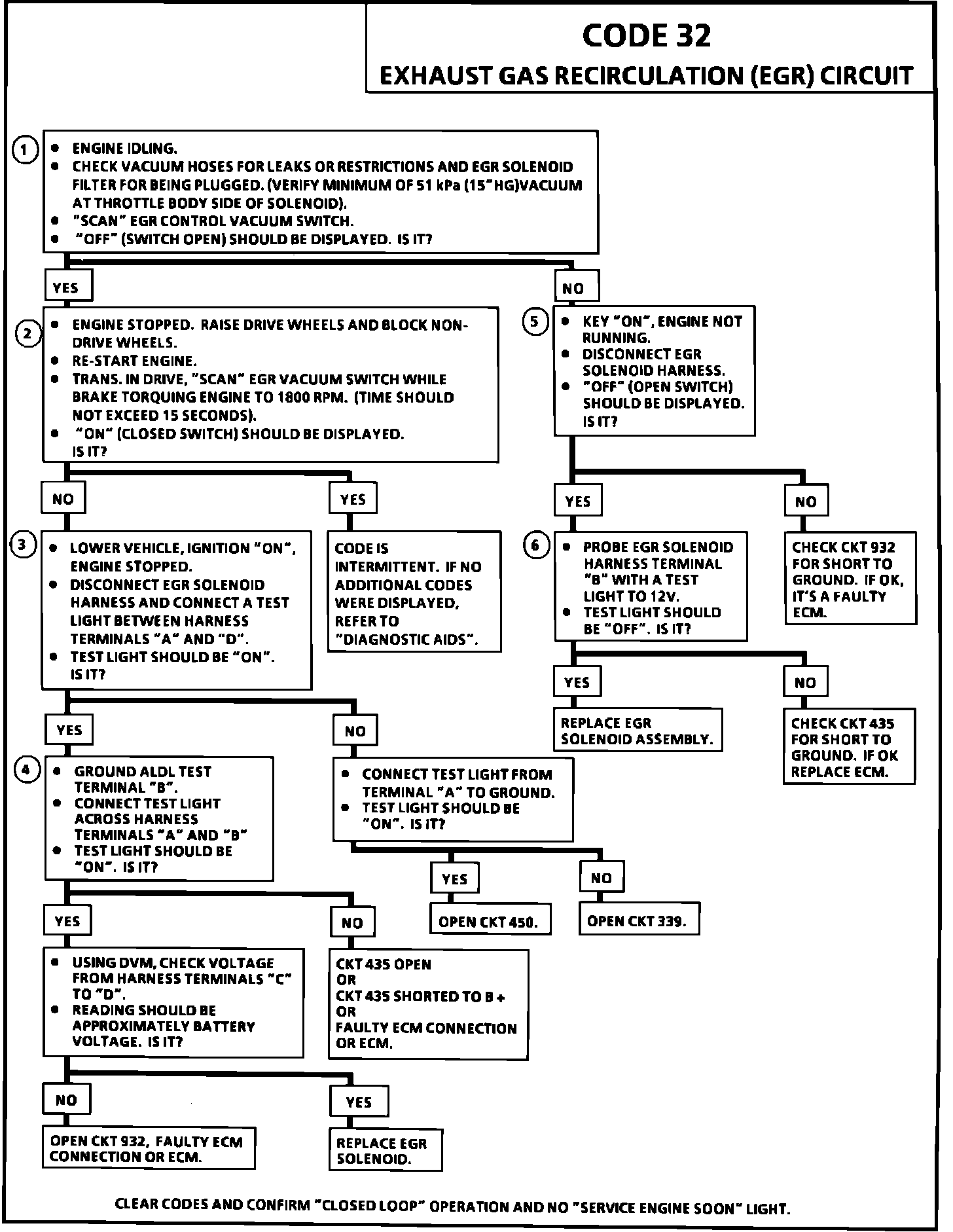 5. If "ON" was displayed at idle, disconnect the EVRV harness. If display remains "ON" the fault is either a short to ground in CKT 932 or the ECM.