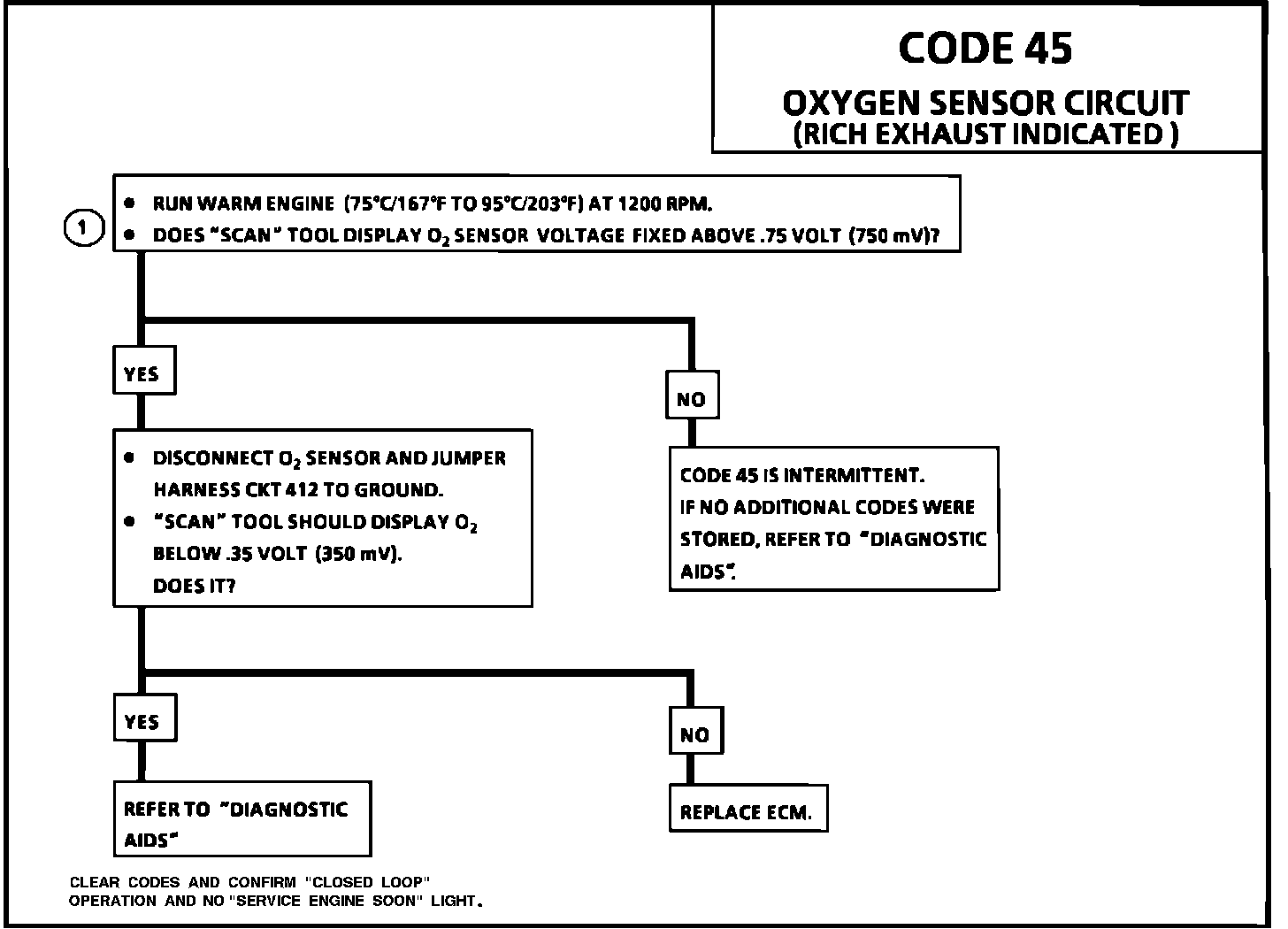 1. Code 45 is set when the O2 sensor signal voltage or CKT 412: