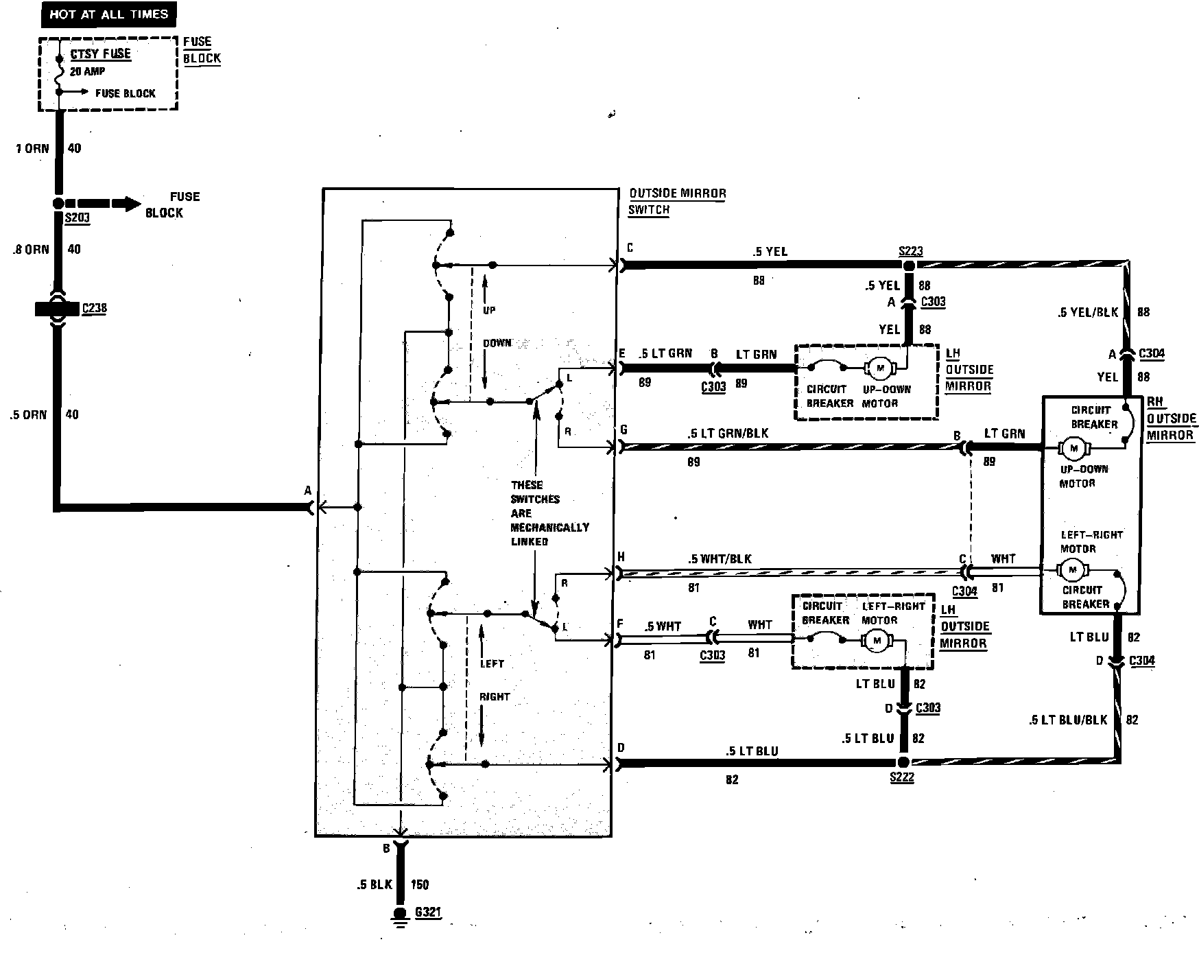 Power Mirror Wiring Circuit: