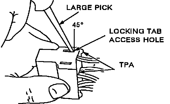 Remove Terminal Position Assurance (TPA) device, Connector Position Assurance (CPA) device and/or secondary lock.