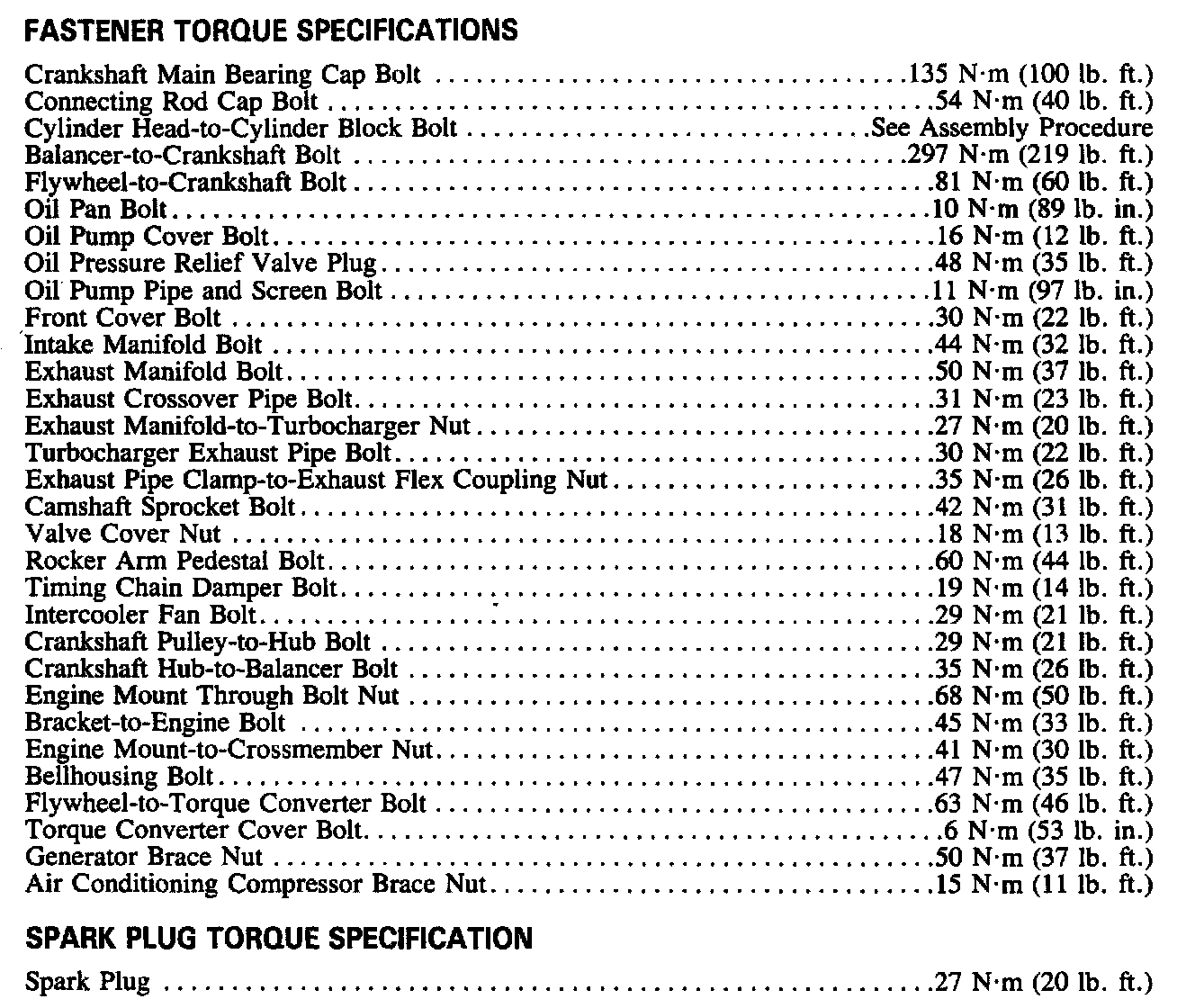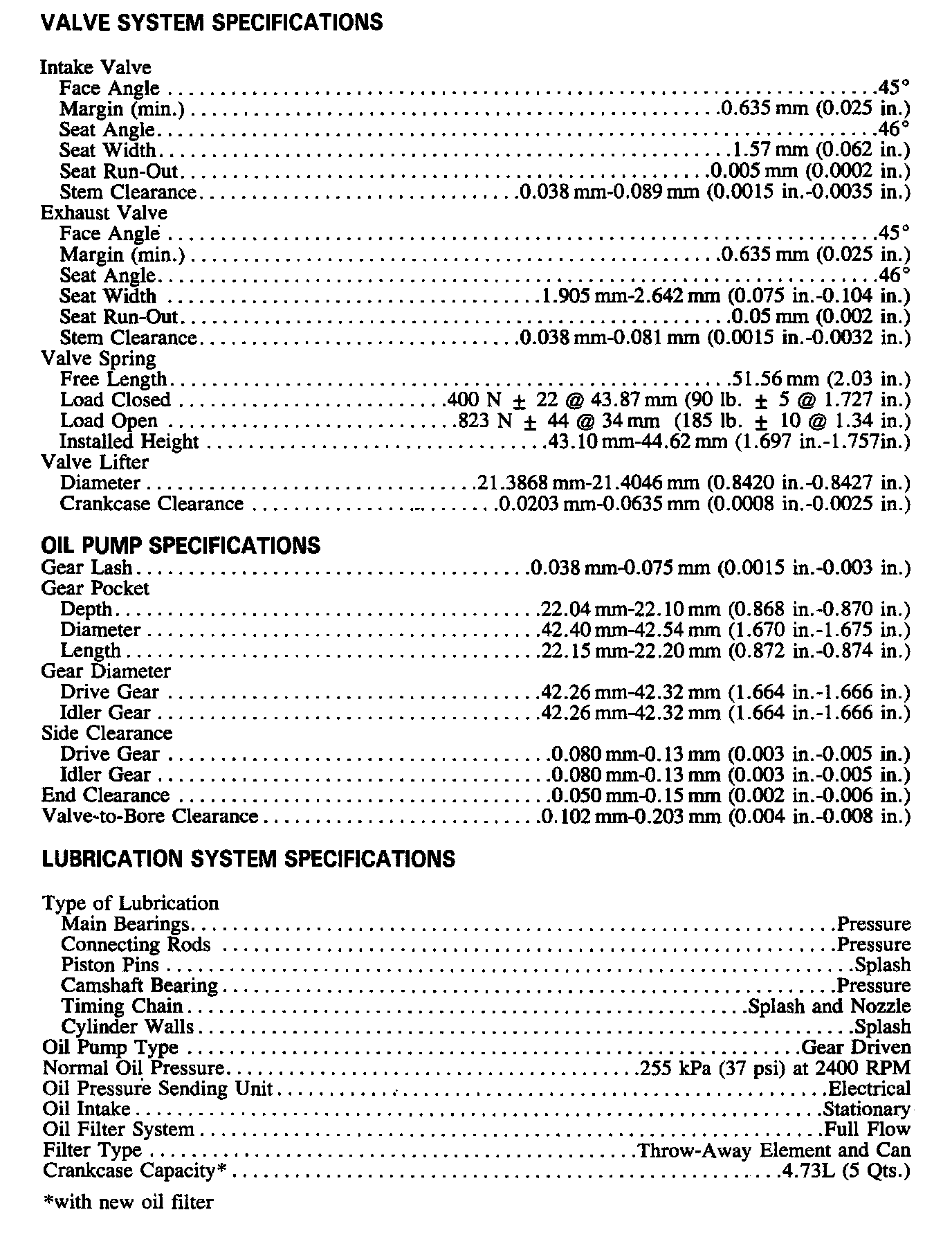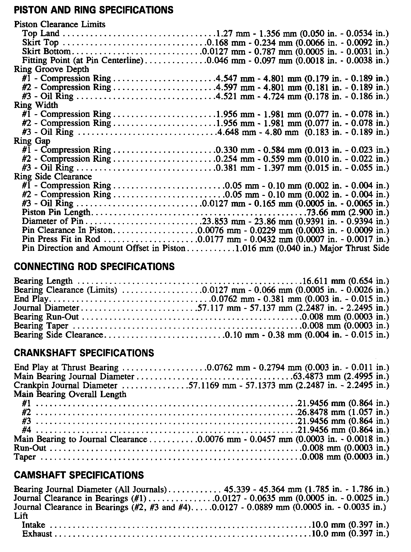 Continued Engine Specifications: