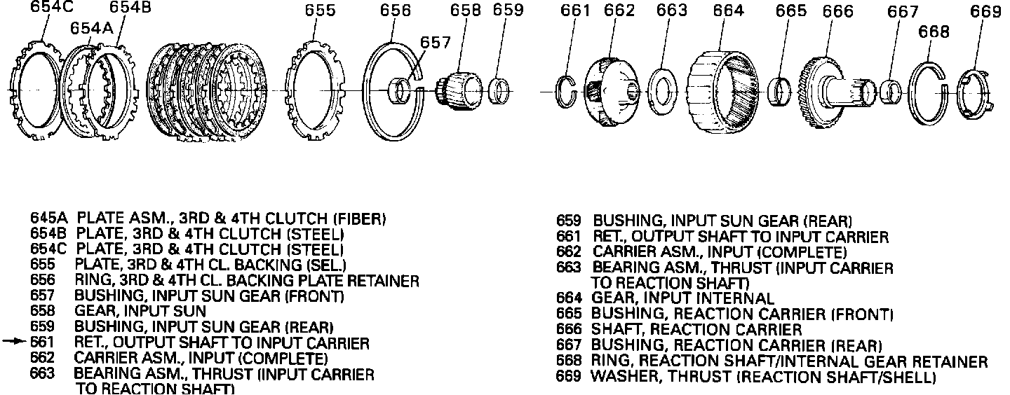 The input carrier to output shaft retaining ring is available in several packages through GMSPO. It is included in the snap ring package, overhaul repair components package, and overhaul seals and gasket package.