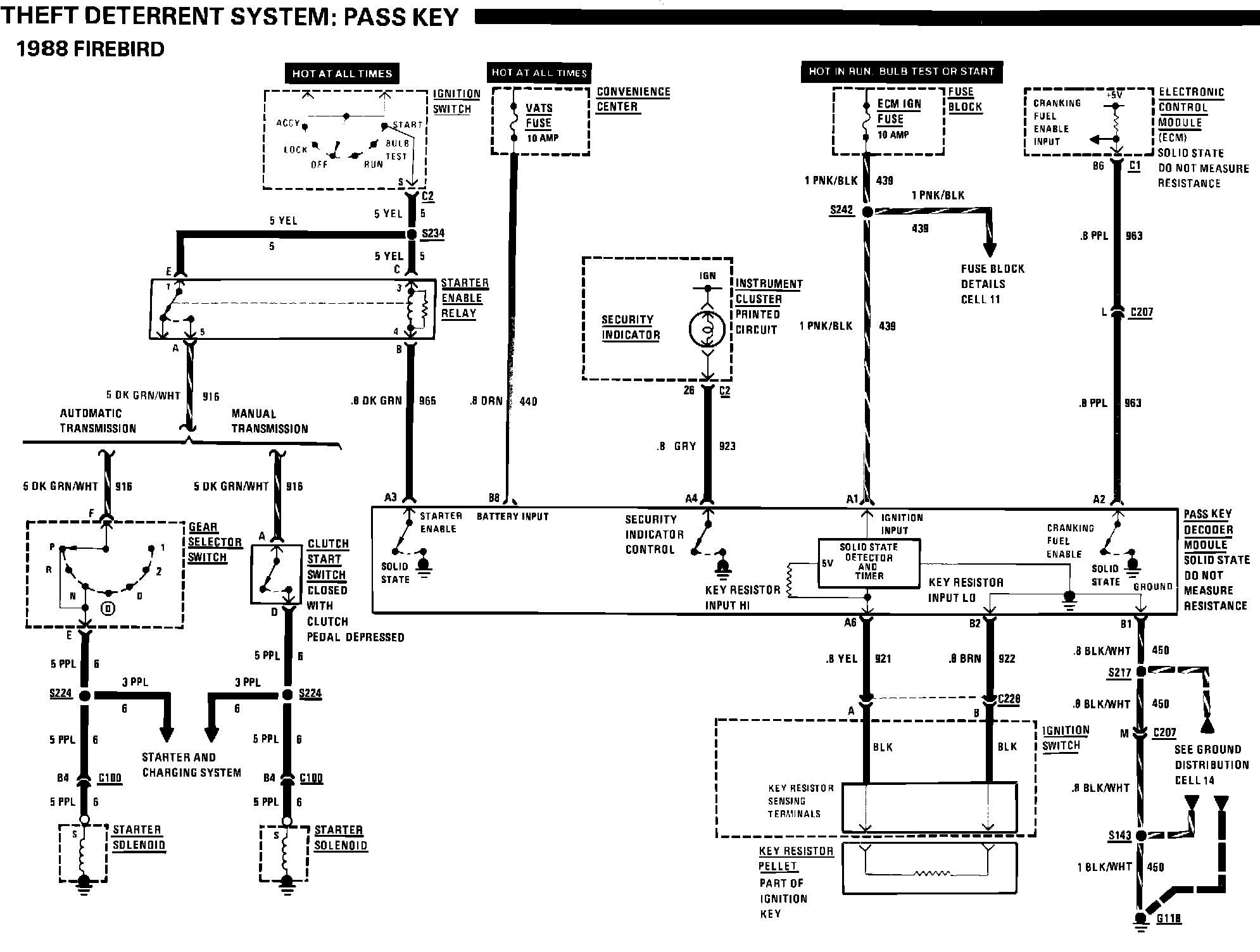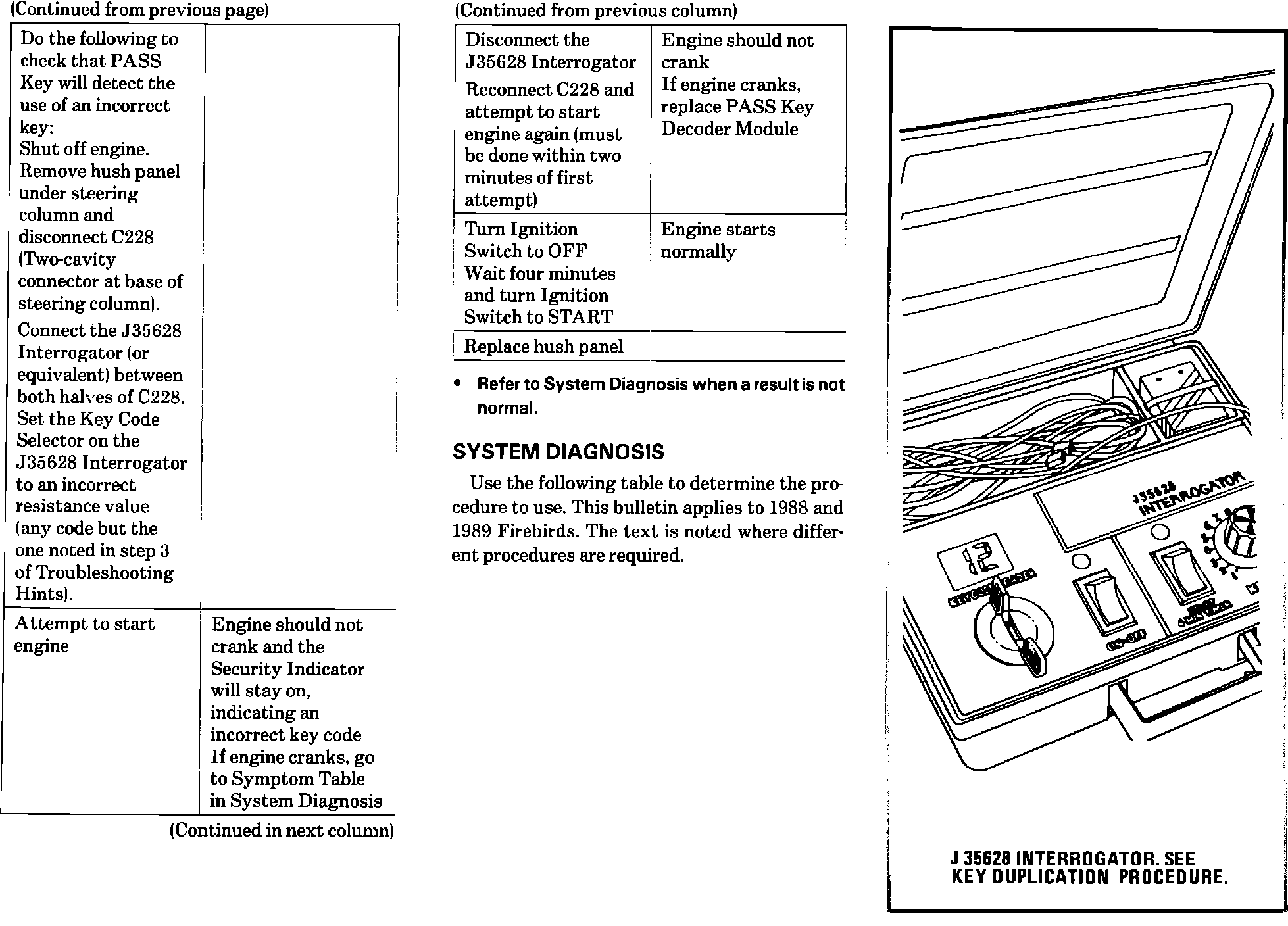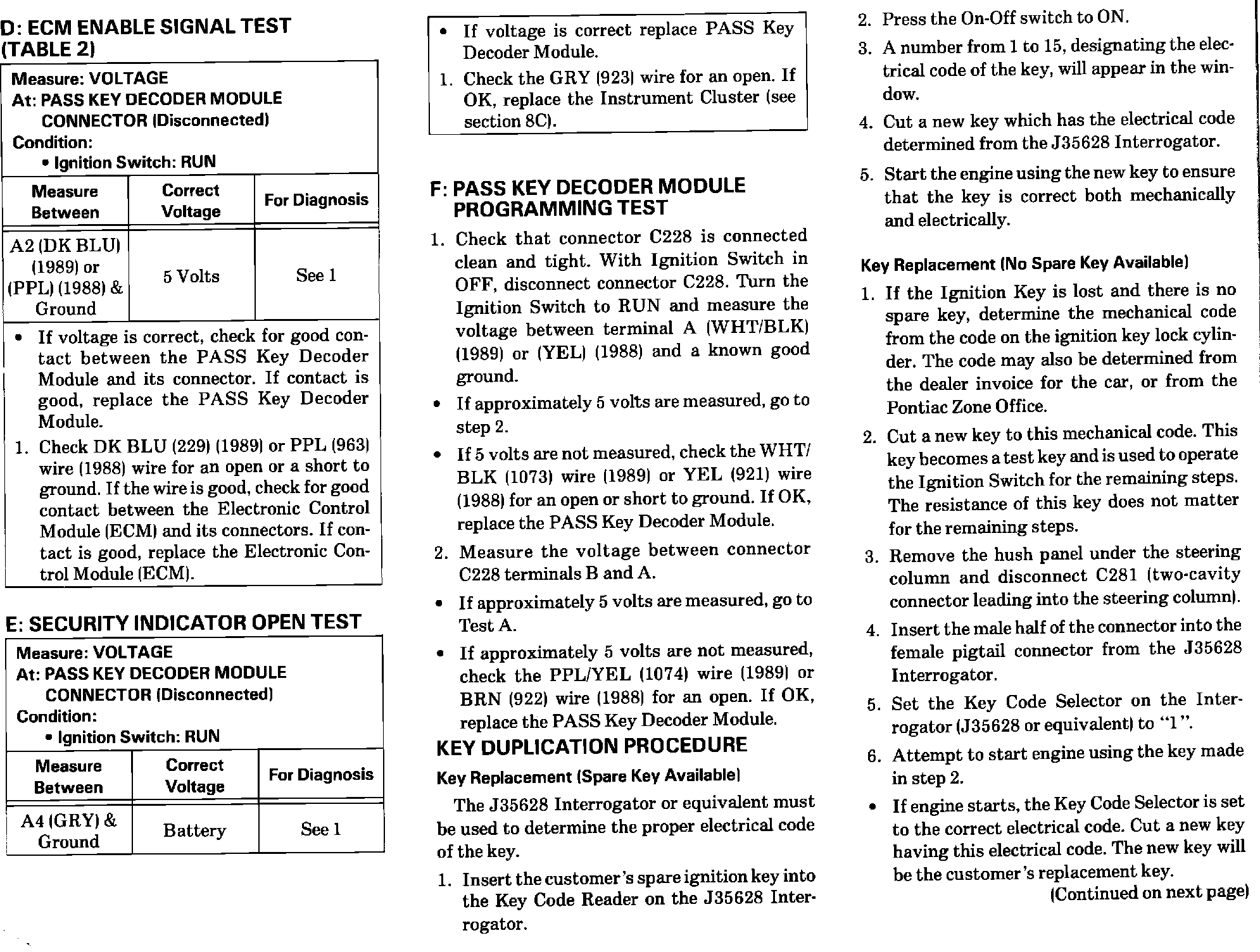 The diagnostic text for the Theft Deterrent System: Pass Key has been revised on the following pages in the 1989 Firebird Service Manual. Please update your manuals.