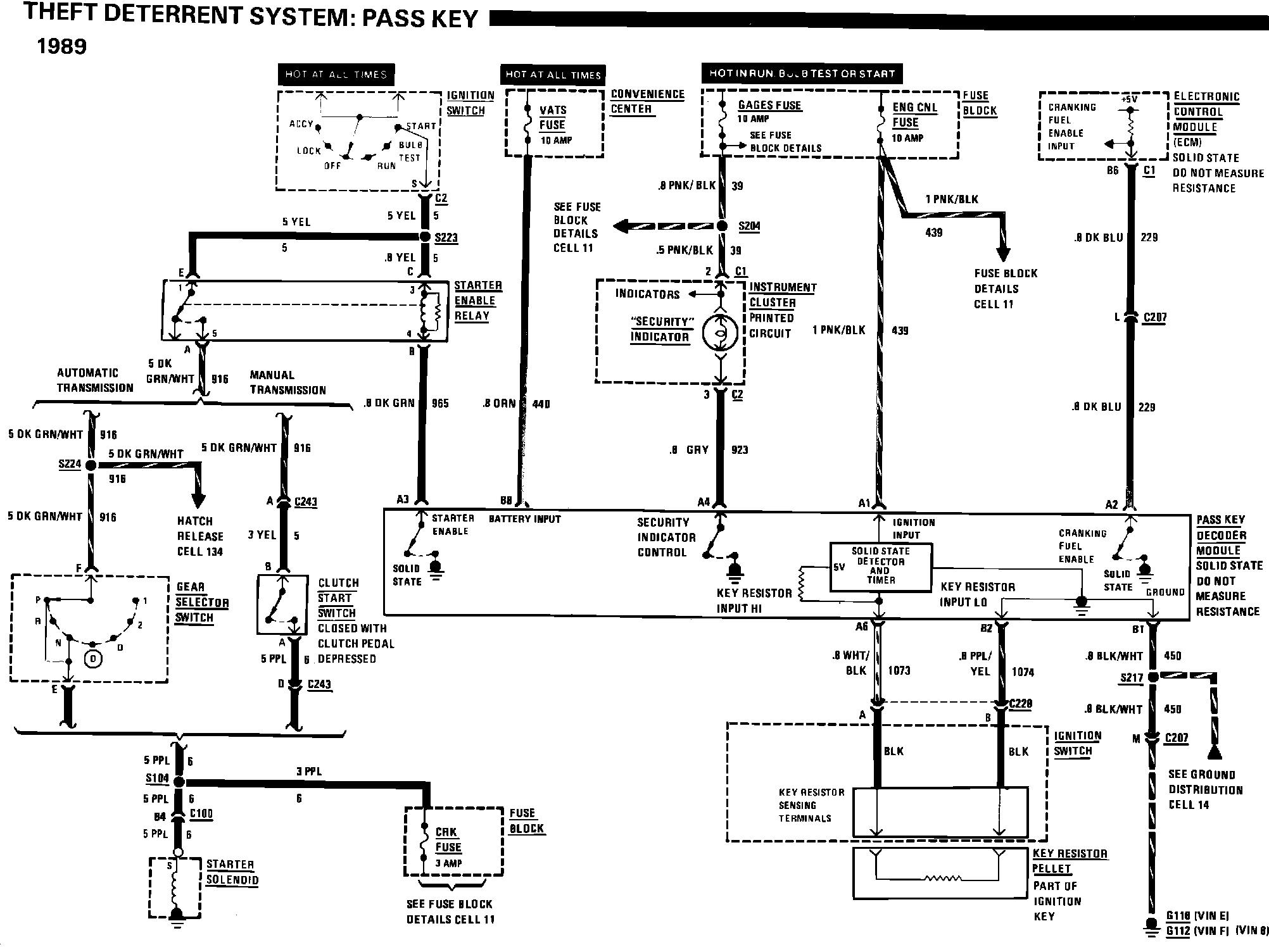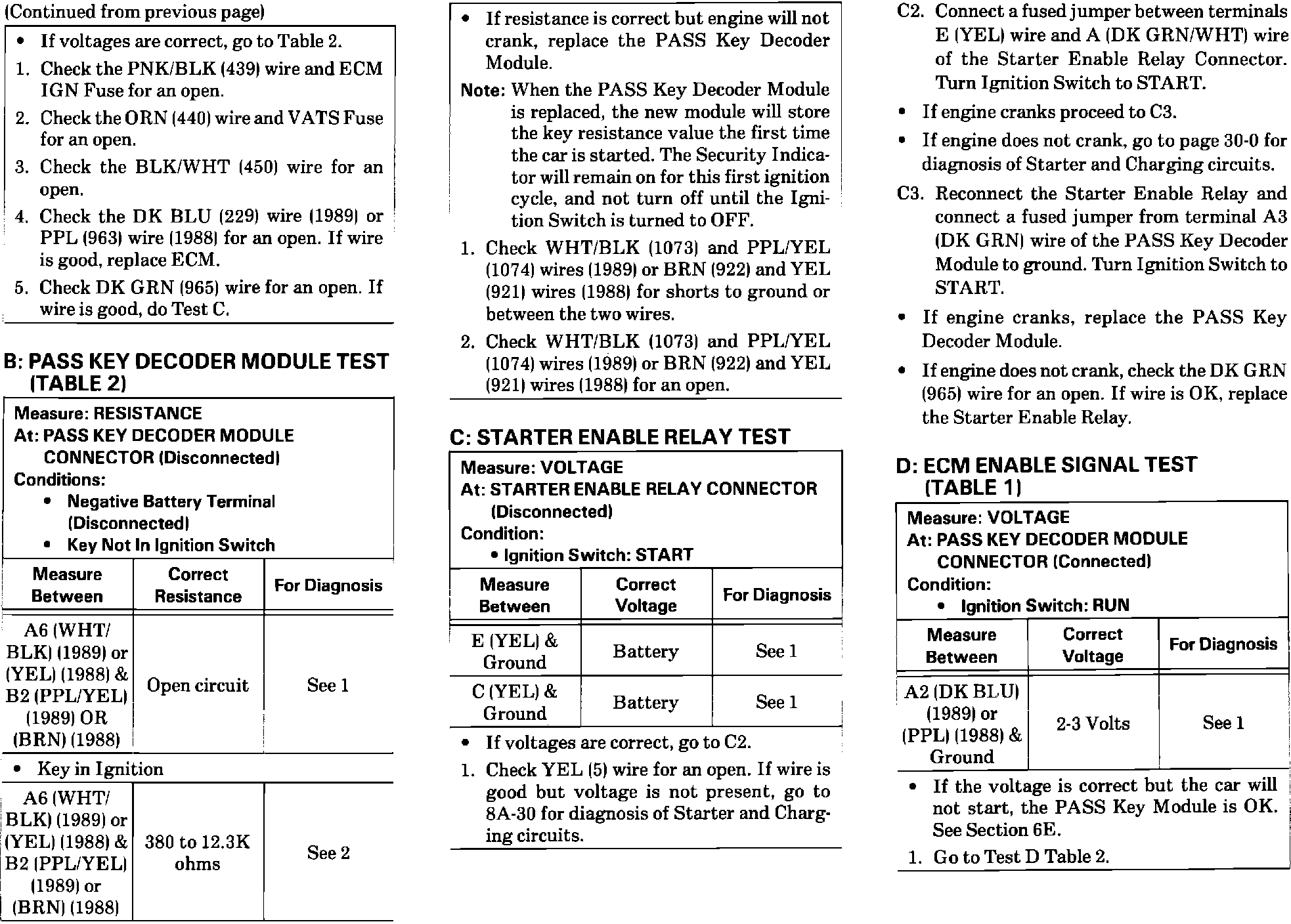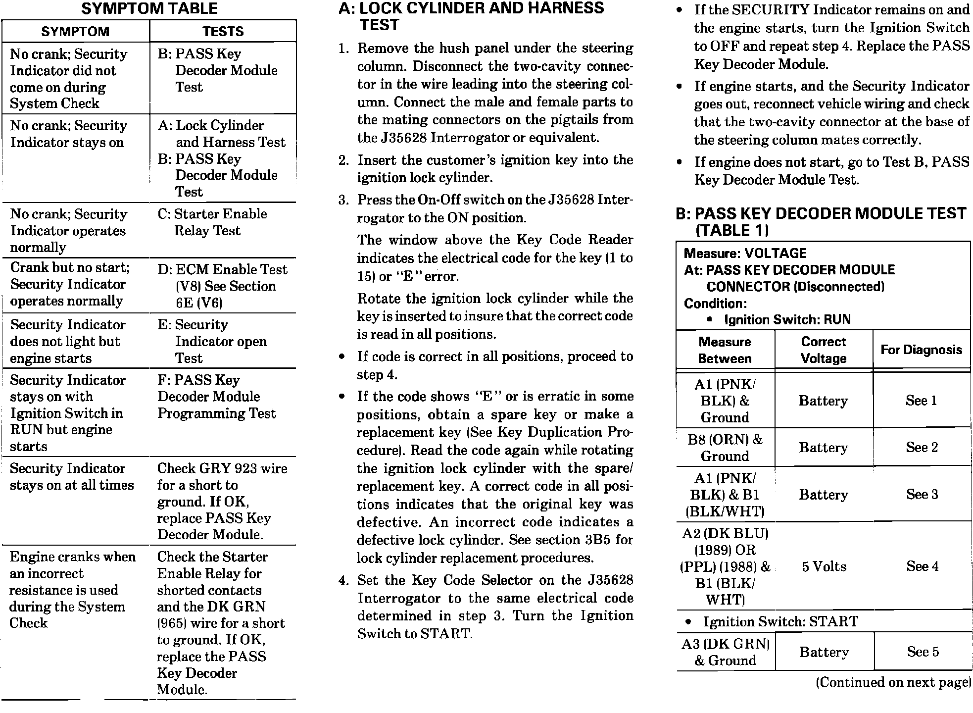 The diagnostic text for the Theft Deterrent System: Pass Key has been revised on the following pages in the 1989 Firebird Service Manual. Please update your manuals.
