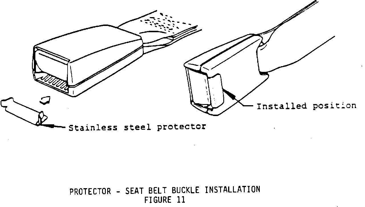 After determining if a vehicle requires protectors, position stainless steel protector onto buckle lower cover - Figure 11. Push steel protector onto cover until it snaps securely.