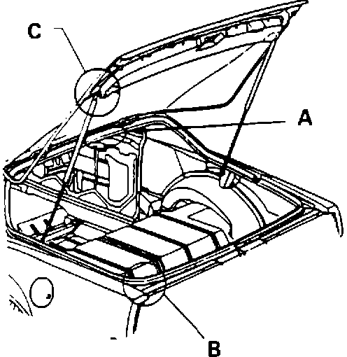 c. While supporting the lid, remove the assist rod attaching screws and then the compartment weatherstrip.