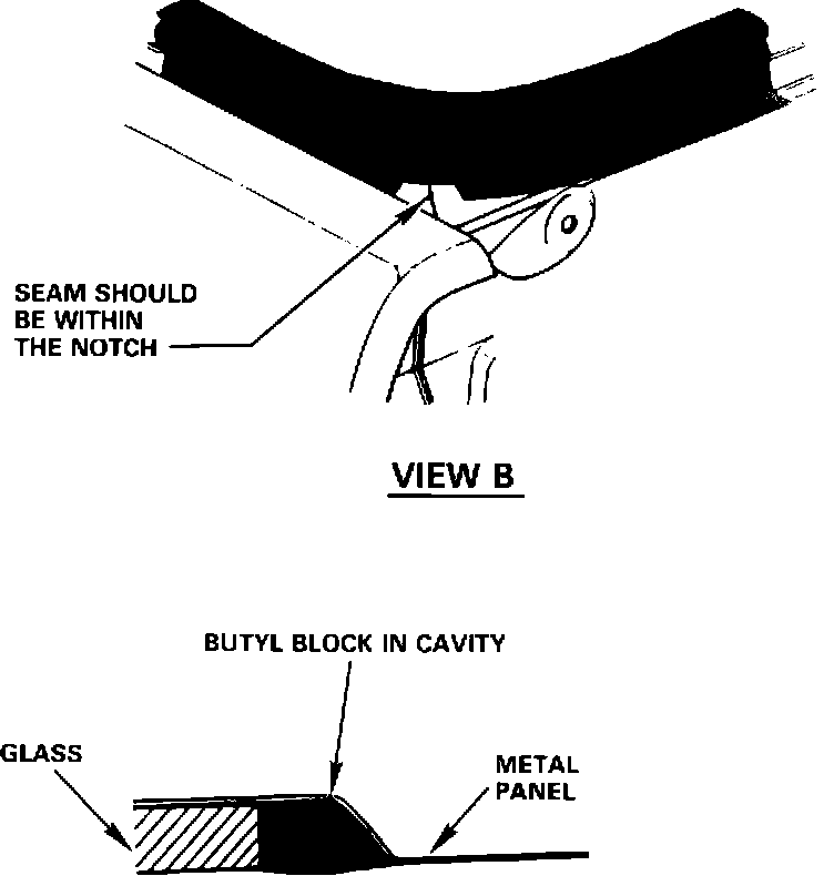 - Locate the notched areas on the weatherstrip at the rear end panel seams, (See Illustrations View B).