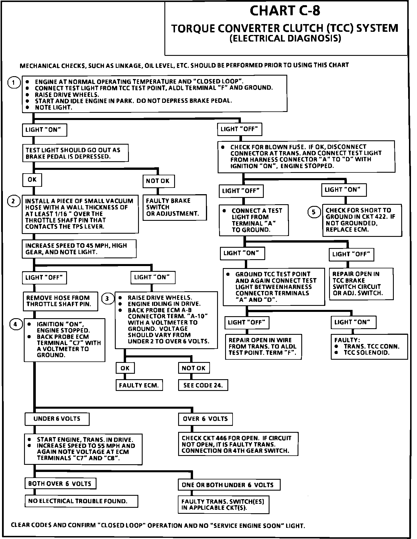 1. A test light "ON" indicates battery voltage and continuity through the TCC solenoid is OK.