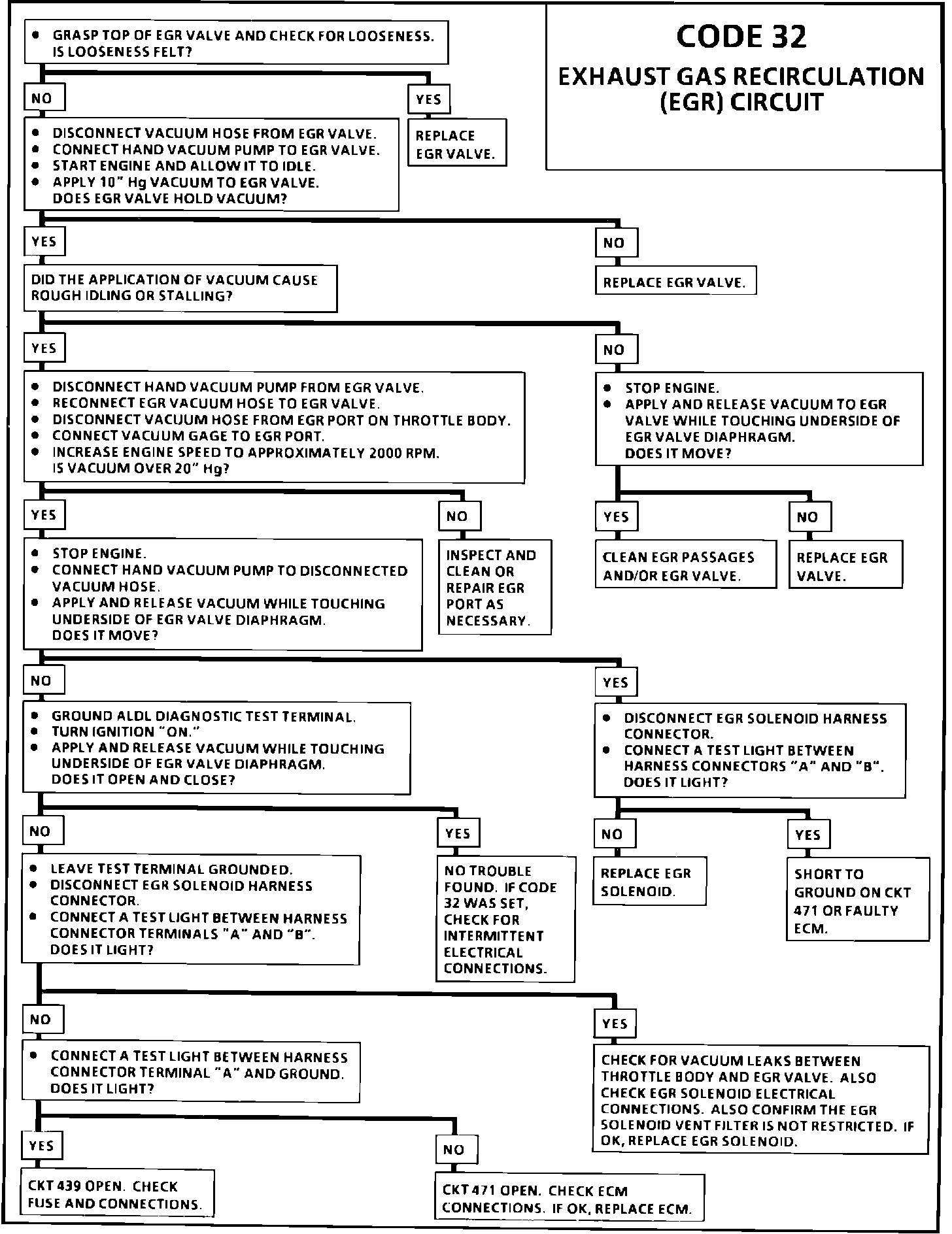 ^ The diagnostic chart covers checks for the entire system. If no troubles found but code 32 was set, an intermittant electrical condition or a sticky EGR valve is at fault.