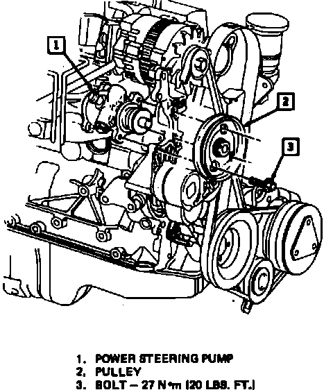 Fig. 15 Power Steering Pump Mounting. 2.0L/4-121 Turbo: