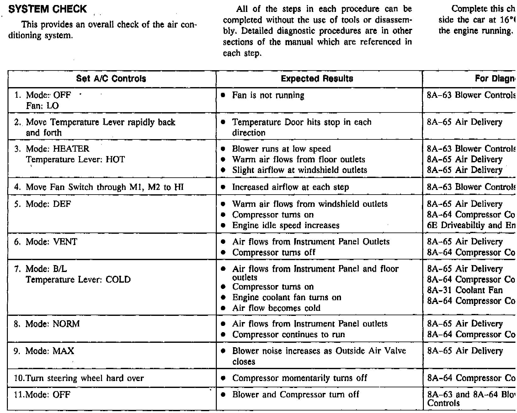 �IA/C System Check Table: