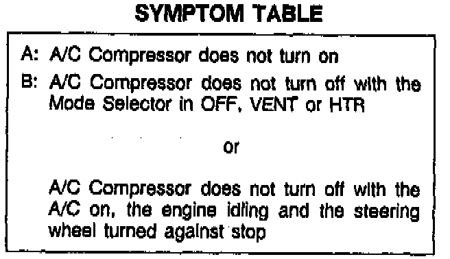 A/C Compressor Controls Symptom Table: