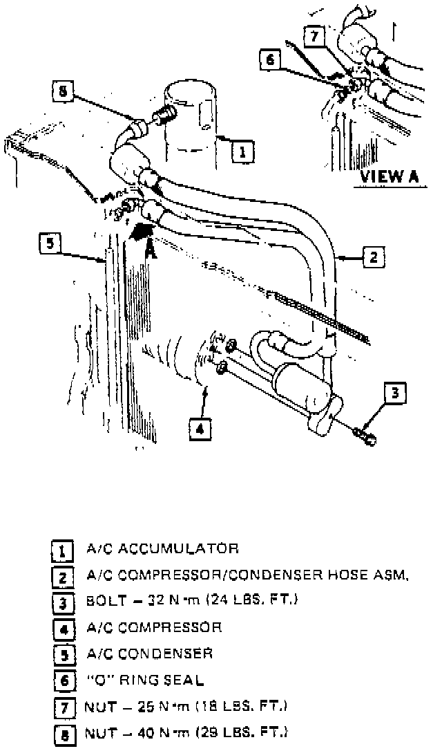 5. Evacuate and recharge A/C system with 1.02 kg (2.25 lbs.) of R-12.