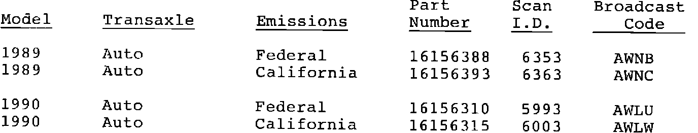 Affected: 1989-90 GRAND AM MODELS W/2.3L (VIN D) AND 3T40