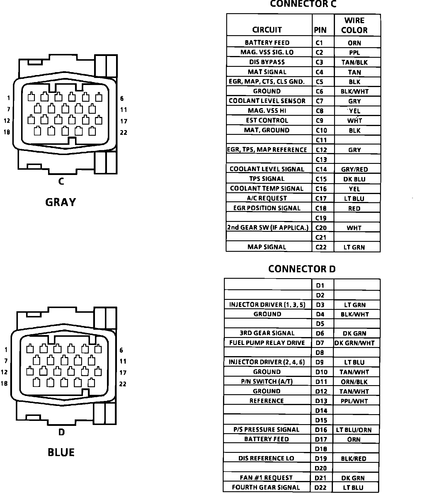 ECM Connector Terminal Identification (Part 2 Of 2):
