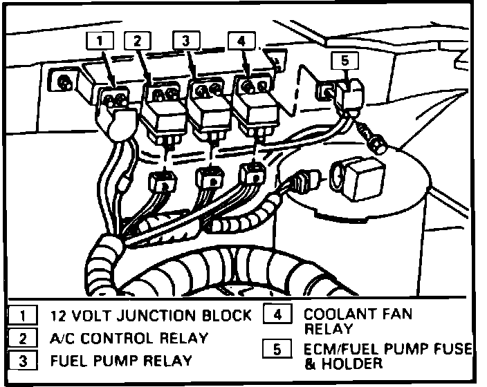 The ECM controls the A/C compressor clutch relay. When the A/C is turned on, the ECM delays the clutch engagement of the A/C compressor to allow the IAC valve to raise the engine idle speed to compensate for the added load. The ECM also causes the relay to disengage the A/C clutch at wide open throttle and high pressure power steering pump loads.