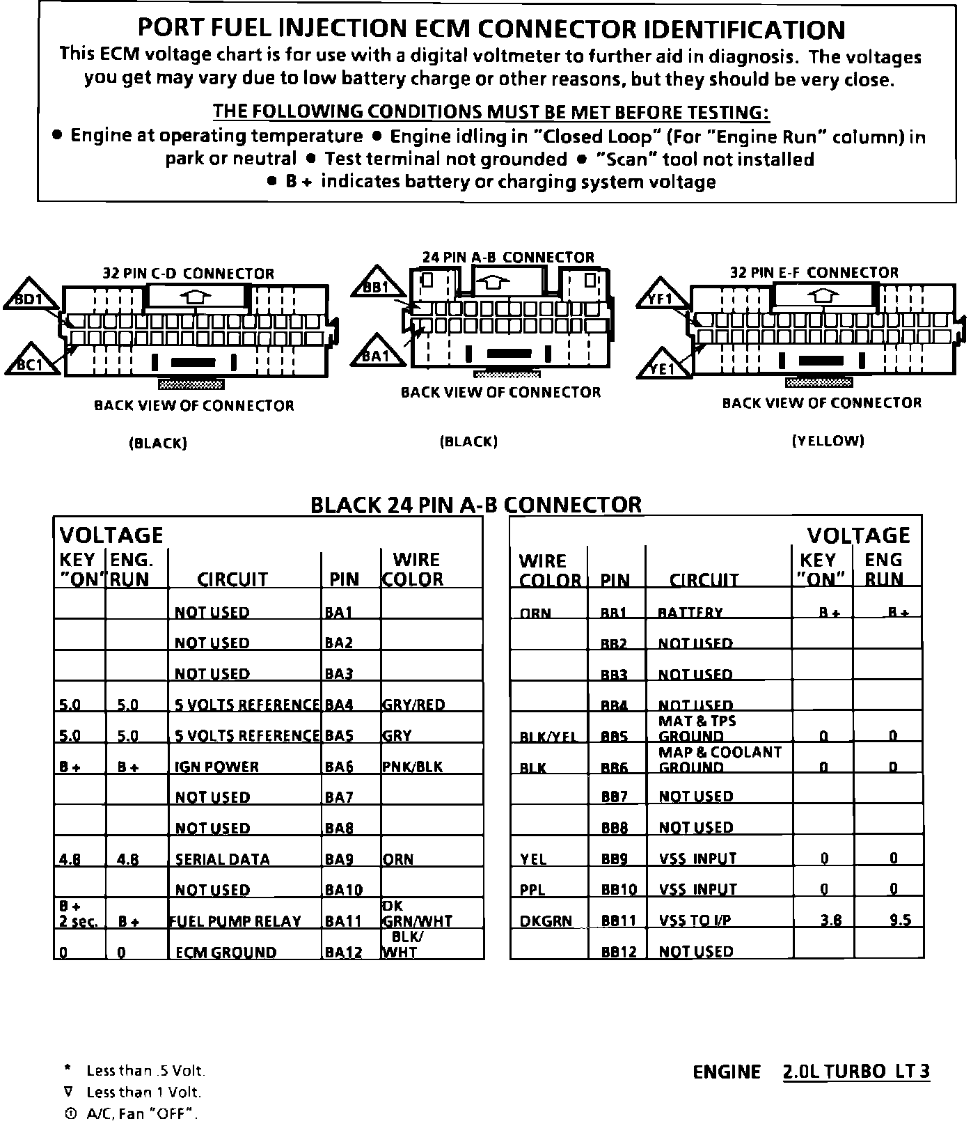 ECM Connector Terminal Identification (Part 1 Of 2):
