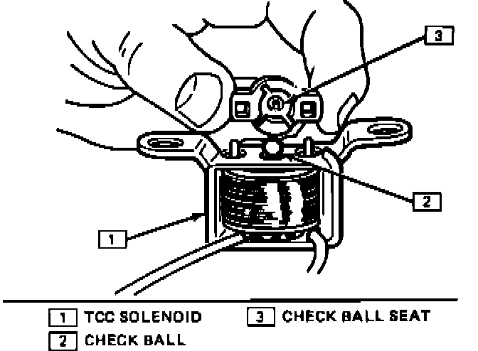 2. The ECM completes a ground circuit to energize the TCC solenoid in the transmission, which moves a check ball in the fluid line. This allows the converter clutch to apply, if the hydraulic pressure is correct.