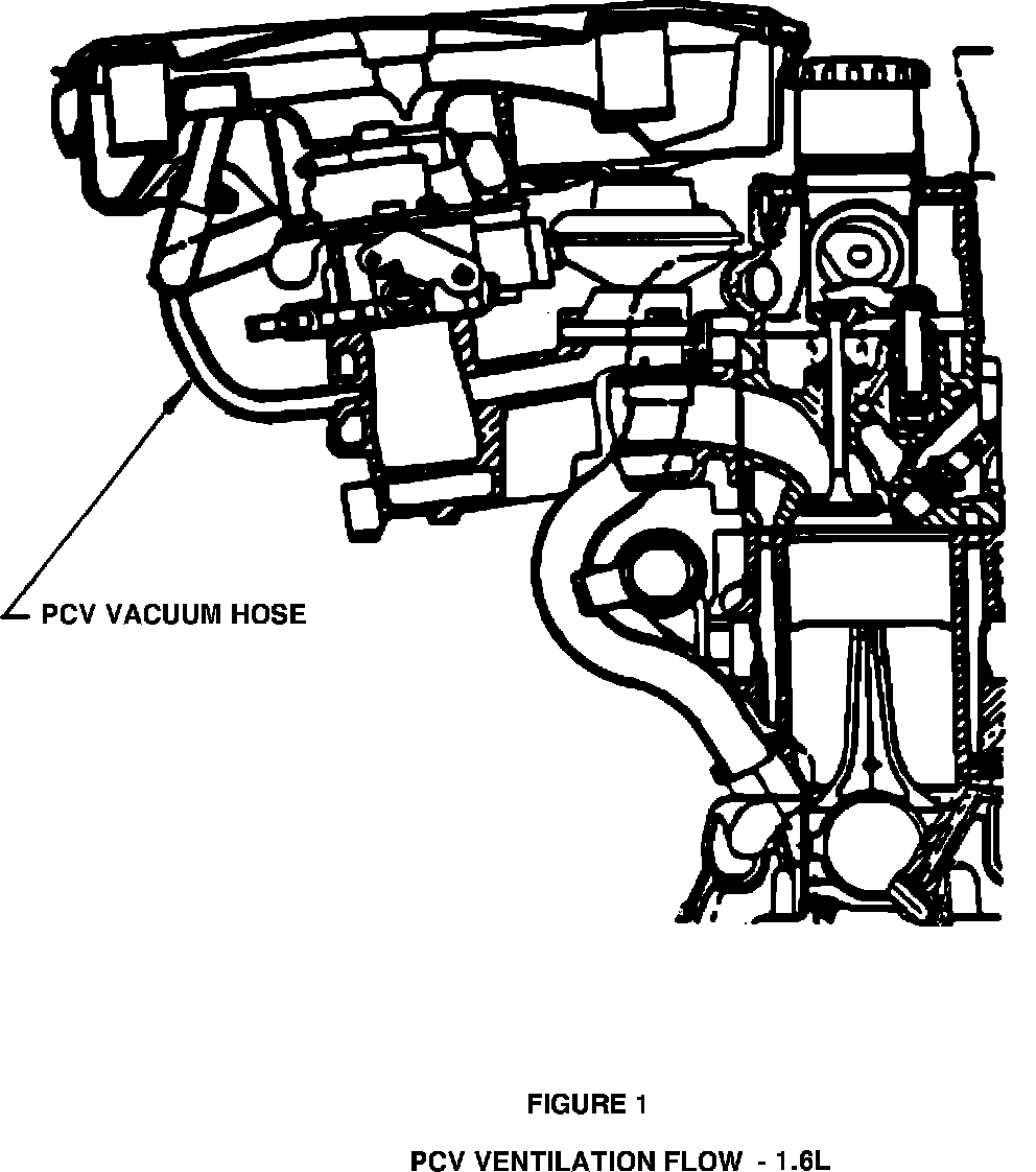 DIAGNOSIS: Inspect the PCV vacuum hose (Figure 1). If the hose does not maintain a positive downward flow to the intake manifold (if a low spot is detectable) then the hose may be too long.