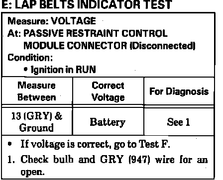 Test E, Lap Belts Indicator Test