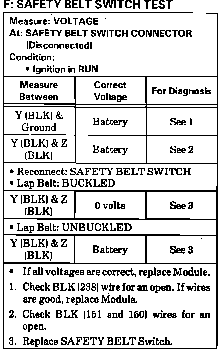 Test F: Seat Belt Switch Test