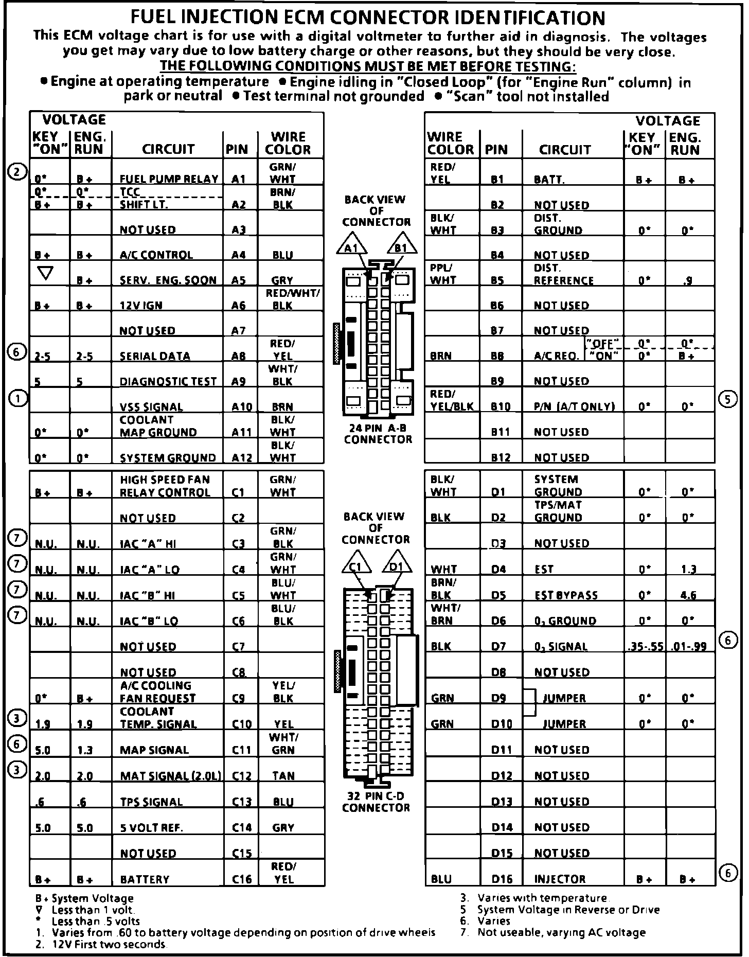 ECM Connector Terminal End View: