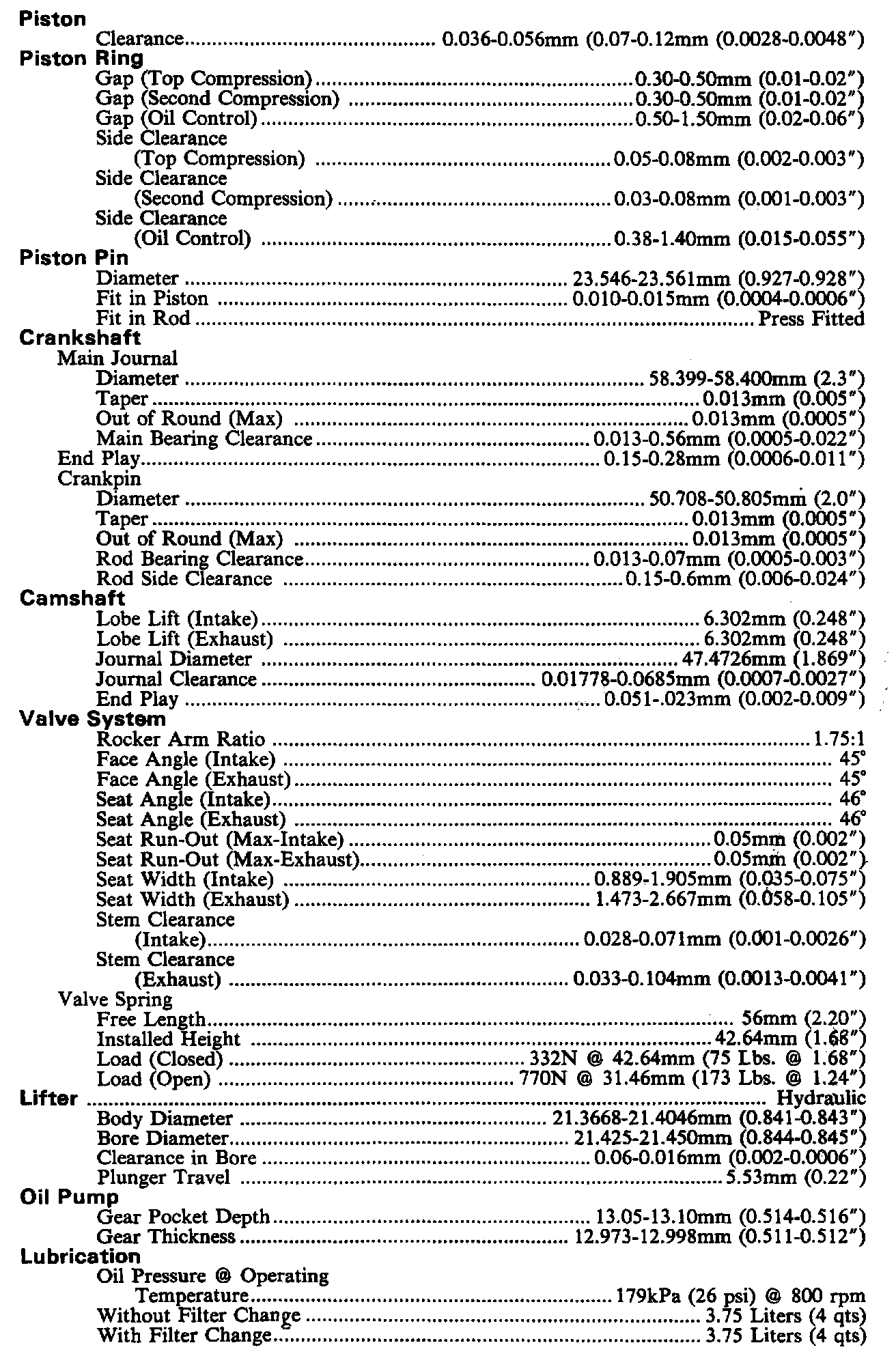 Engine Specifications: