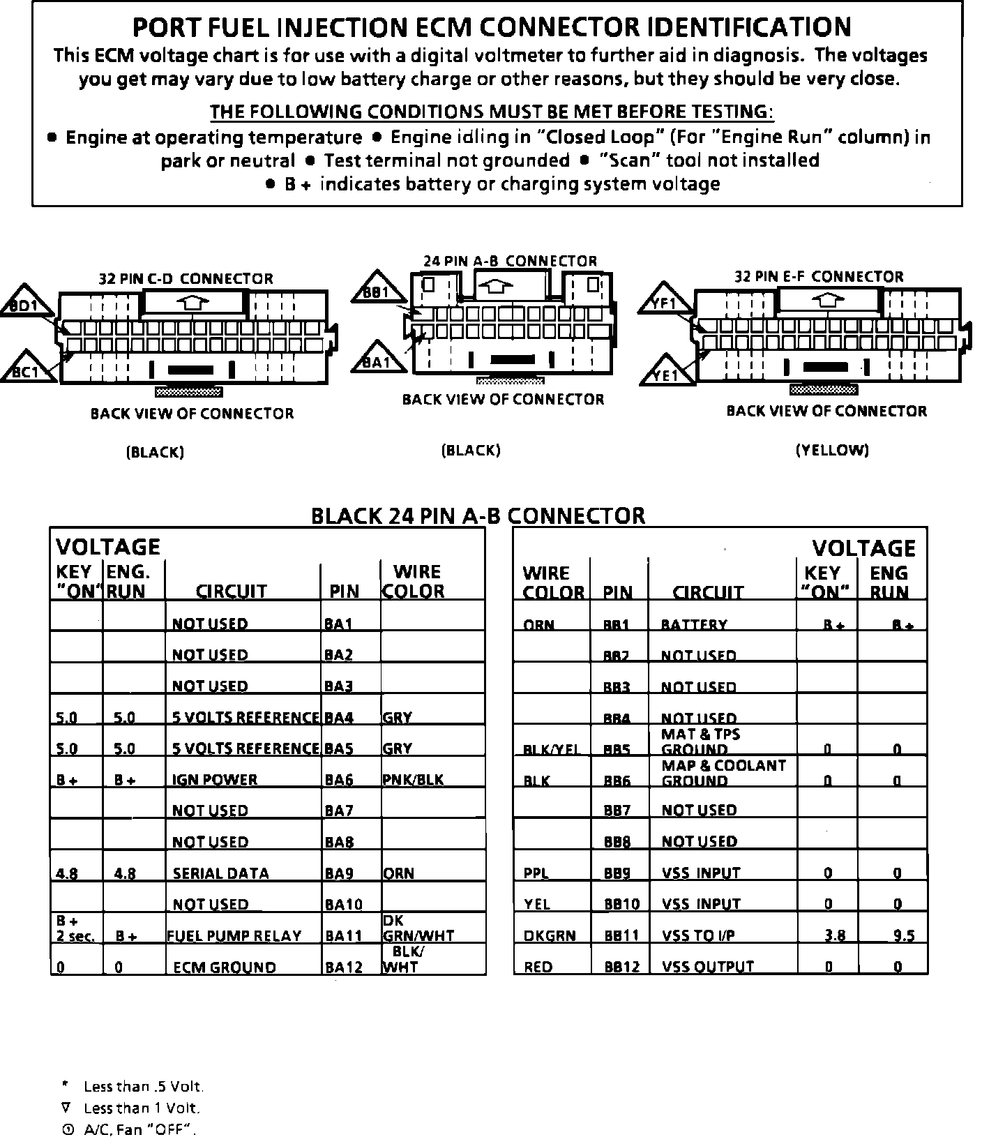 ECM Connector Terminal Identification And Voltage Specification (Part 1 Of 2):