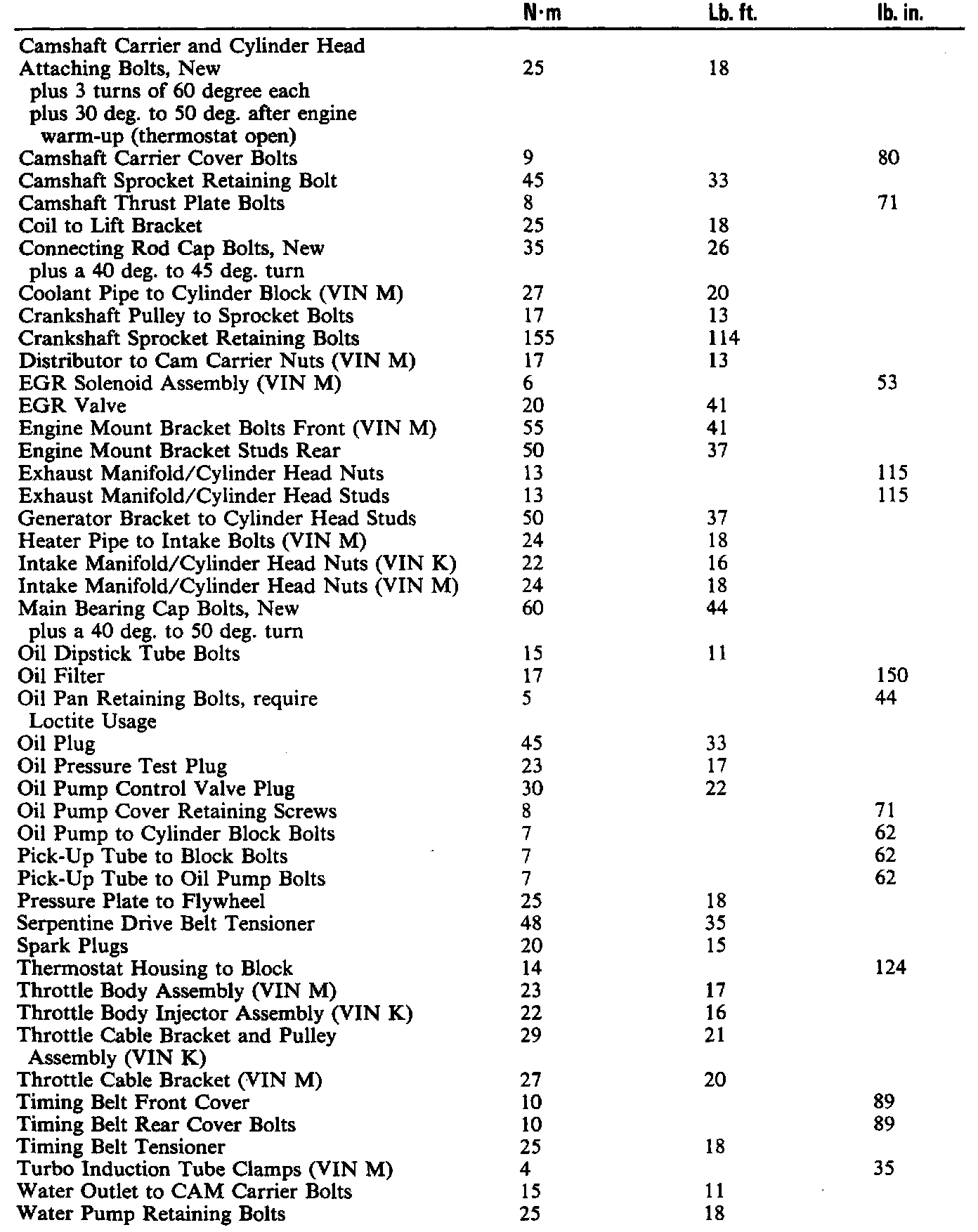 Torque Specifications: