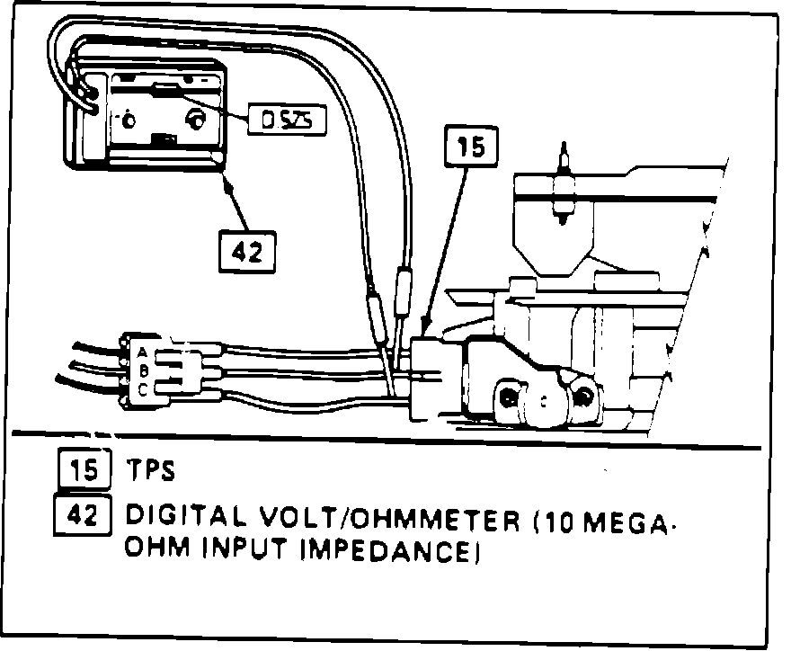 The Throttle Position Sensor (TPS) is not adjustable. The normal closed throttle position voltage is below 1.33 volts, and normal wide open throttle position voltage is approximately 5.0 volts. If these limits are not in specification, check for freedom of throttle movement, and accelerator pedal interference from carpets and other obstructions. If the problem is not corrected, replace the TPS.