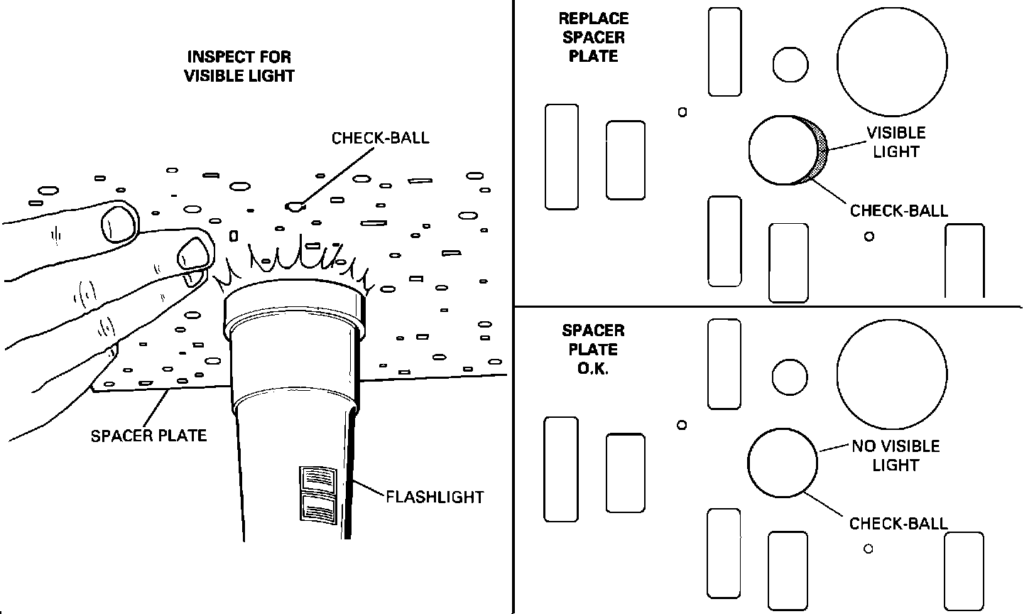 SERVICE PROCEDURE: The following two procedures can help determine if the spacer plate can be reused. The following must be performed at all check-ball locations.