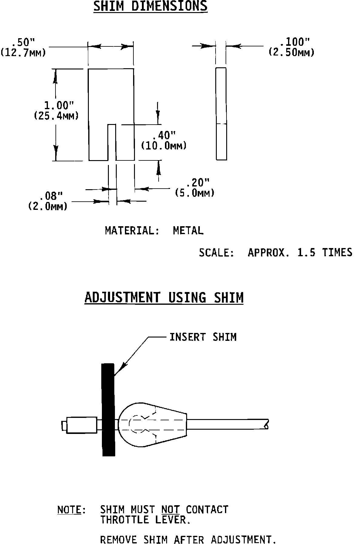 Note: Shim must not contact throttle lever.