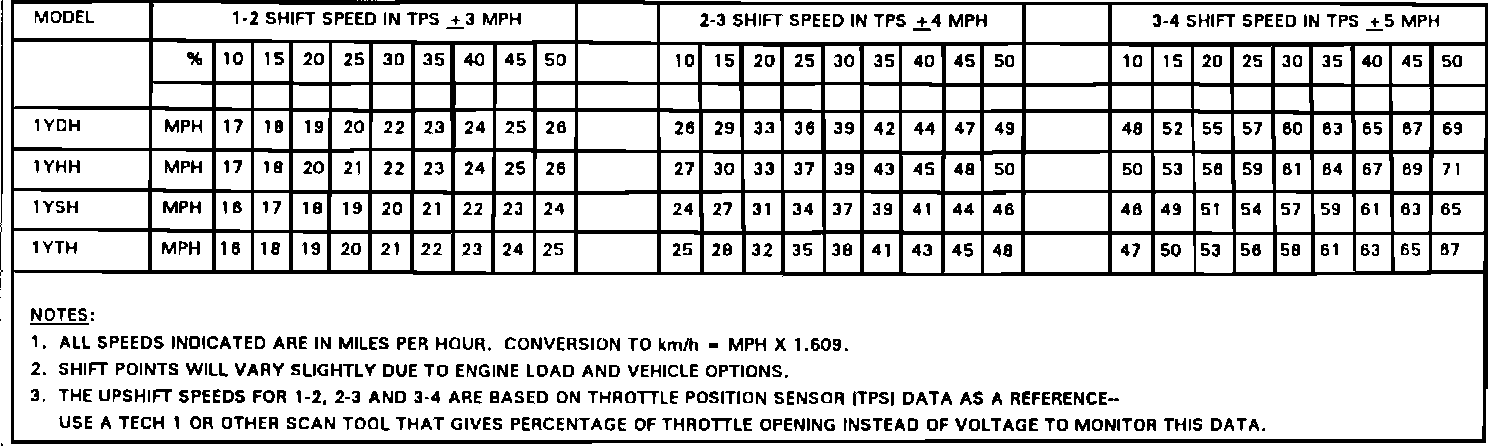 1990 HYDRA-MATIC 4T60 SHIFT SPEED CHART