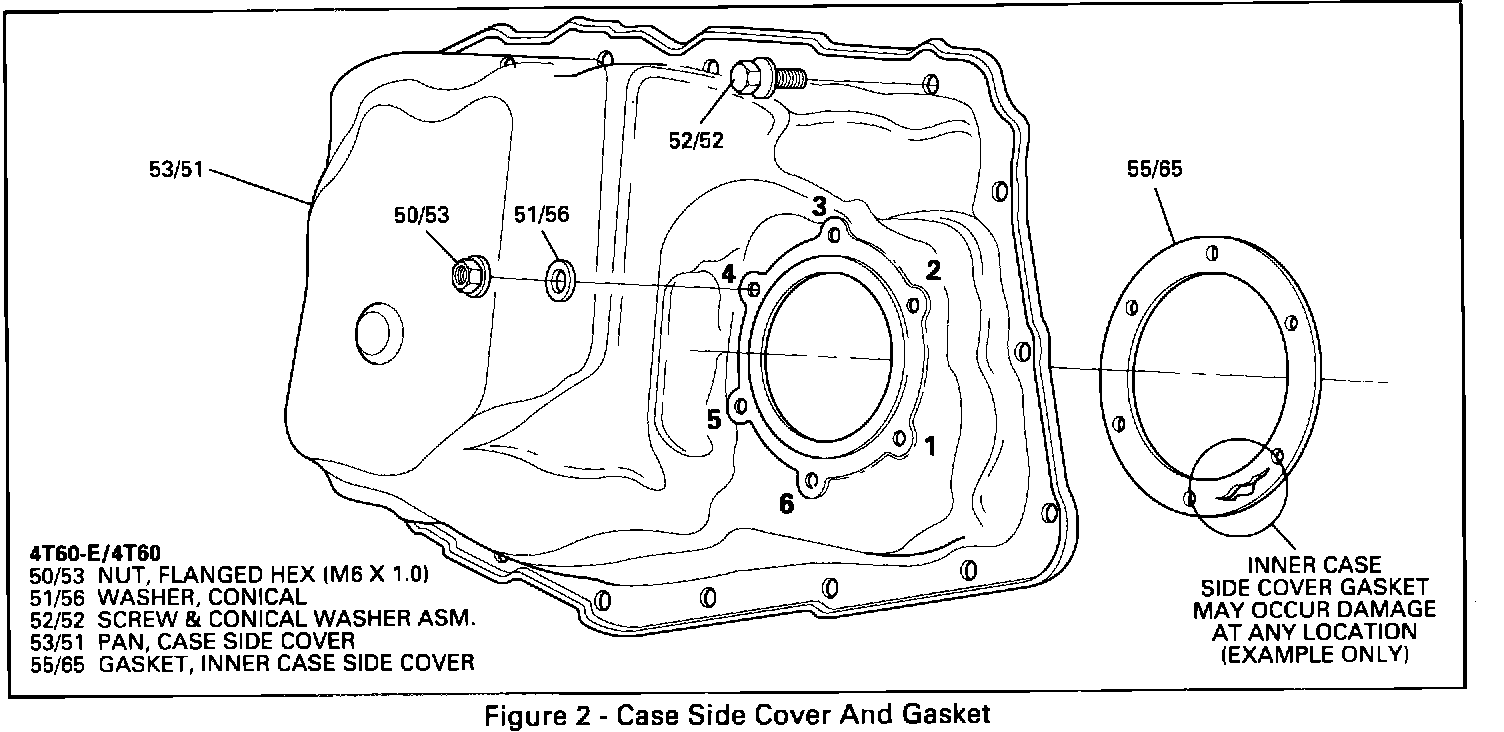 The Side-Cover to channel plate gasket may be split or torn due to a raised surface or ridge on the sealing side of the pan assembly. This raised edge can apply additional pressure on the gasket and a tear may develop. Vehicle mileage and vibration are factors which can accelerate the potential of the gasket to tear. The entire inner case side cover gasket is suspect and should be inspected carefully for this condition.