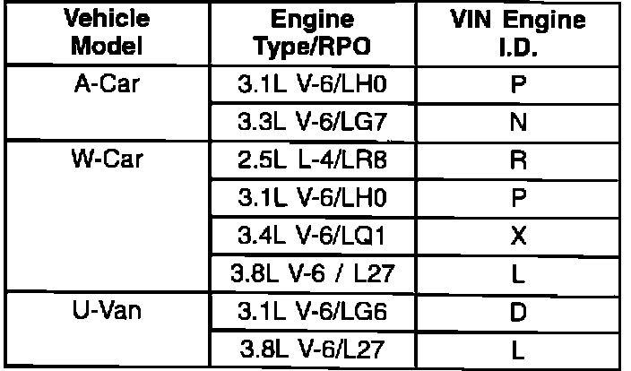 Some 1990-94 U-vans and "A and W" cars with engines indicated (see illustration), may exhibit a squeak noise coming from the front of the vehicle. This condition is most evident during a "garage shift" maneuver, but may occur during any maneuver or action that results in a vehicle rocking motion such as entering or exiting a vehicle.