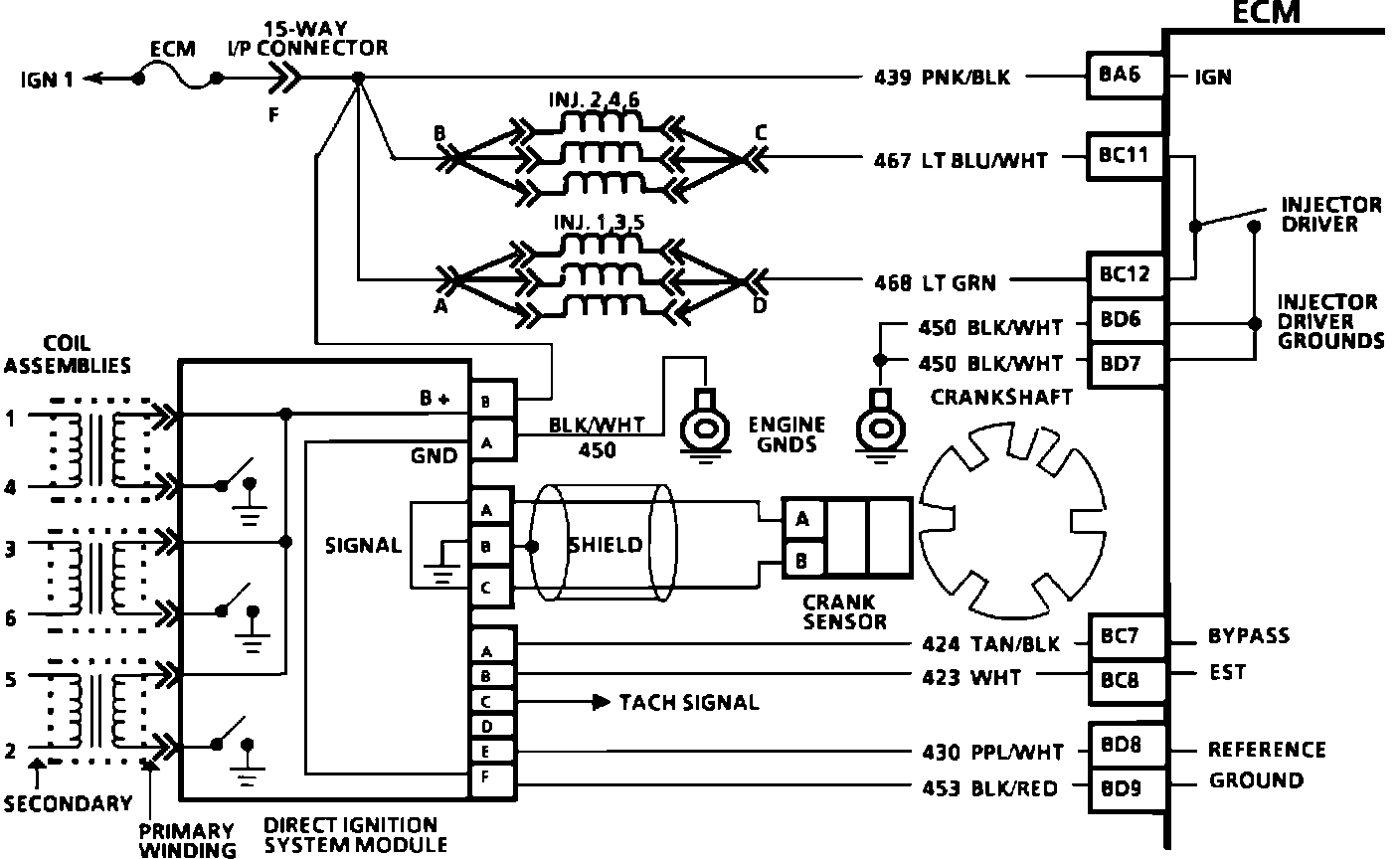 2. Checks for a normal EST ground path through the ignition module. An EST CKT 423 shorted to ground will also read less than 500 ohms; however, this will be checked later.