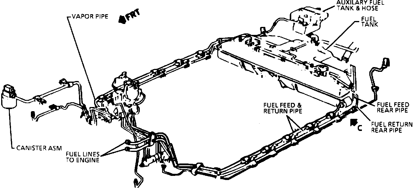 ^ When replacing fuel return connecting hose, always replace it with original equipment or parts meeting GM specifications, use only reinforced fuel-resistant hose which is identified with the word "Fluroelastomer" or "GM 6163-M" on the hose. Inside hose diameter must match outside pipe diameter.